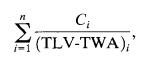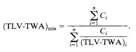 In situations where multiple chemicals are present in the workplace,acommonapproachistoconsidertheeffectsof thesetoxicsubstancesascumulative.Theoverallexposure fromvarioustoxicants,eachwithdistinctTLV-TWAs,canbe calculatedusingafollowingequation.