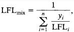 Where,LFLiisthelowerflammablelimitforcomponenti(in volume %) of component i in fuel and air, yi is the mole fractionofcomponentionacombustiblebasis,andnisthe numberofcombustiblespecies. (26)