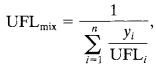 Where,UFLiistheupperflammablelimitforcomponenti(in volume%)infuelandair, yiisthemolefractionofcomponentionacombustiblebasis, and nisthenumberofcombustiblespecies.