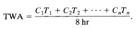 A straightforward approach to assess worker exposures involvesthecontinuousmonitoringofairconcentrationsof toxic substances in the workplace. To calculate the timeweightedaverage(TWA)concentrationfromthecontinuous concentrationdataC(t),thefollowingequationisutilized.