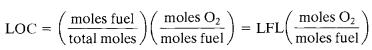 TheLOChasunitsof%ofmolesofoxygenintotalmoles.If experimental data are not available, the LOC is estimated usingthestoichiometryofthecombustionreactionandthe LFL.[14] (27)