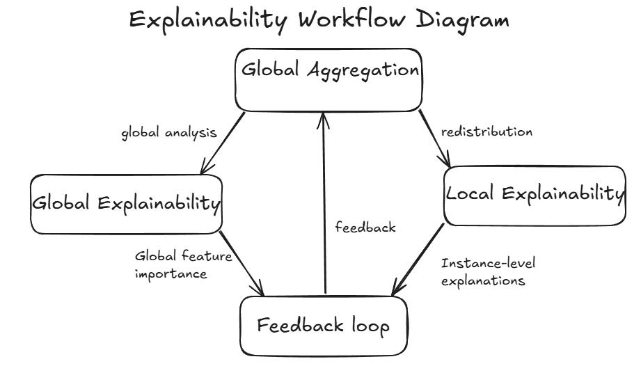 Explainability Integration Workflow: Explainability is deeply integrated into the federated learning pipeline. After the central server aggregates model updates from localnodes,SHAPvaluesarecomputedforglobalmodelto generatebothglobalandlocalexplanations.