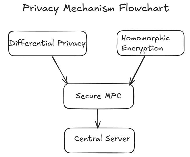 Homomorphic encryption, Paillier CryptoSystem used for encrypting gradients, secures the updates during transmission that enables computations to be performed directly on encrypted data without requiring decryption. Additionally, secure multi-party computation, using Shamir’sSecretSharingtechnique,ensuresthattheserver can aggregate updates without accessing individual contributions. The updates are split into shares and distributedtomultiplepartieswhichcollectivelycompute thesumwithoutrevealingindividualdata.