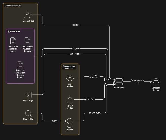 A centralized repository ensures that question papers from various academic levels and institutions are systematically stored and preserved for future use. Studentsand educatorscan accessthe repositoryanytime and anywhere, making it a reliable resource for exam preparation. Security measures such as role-based access, encryption, and regular backups safeguard both user data andcontent. Educatorsandinstitutionscanupload,verify, and review question papers, promoting collaboration and knowledge sharing. Students benefit from access to a wealthofquestionpapersthathelpthemunderstandexam patternsandpracticeeffectively. Theplatformreducesthe dependency on physical paper storage, contributing to environmental sustainability. The system ensures the longevity and accessibility of academic resources, addressing the recurring need for previous year question papers.