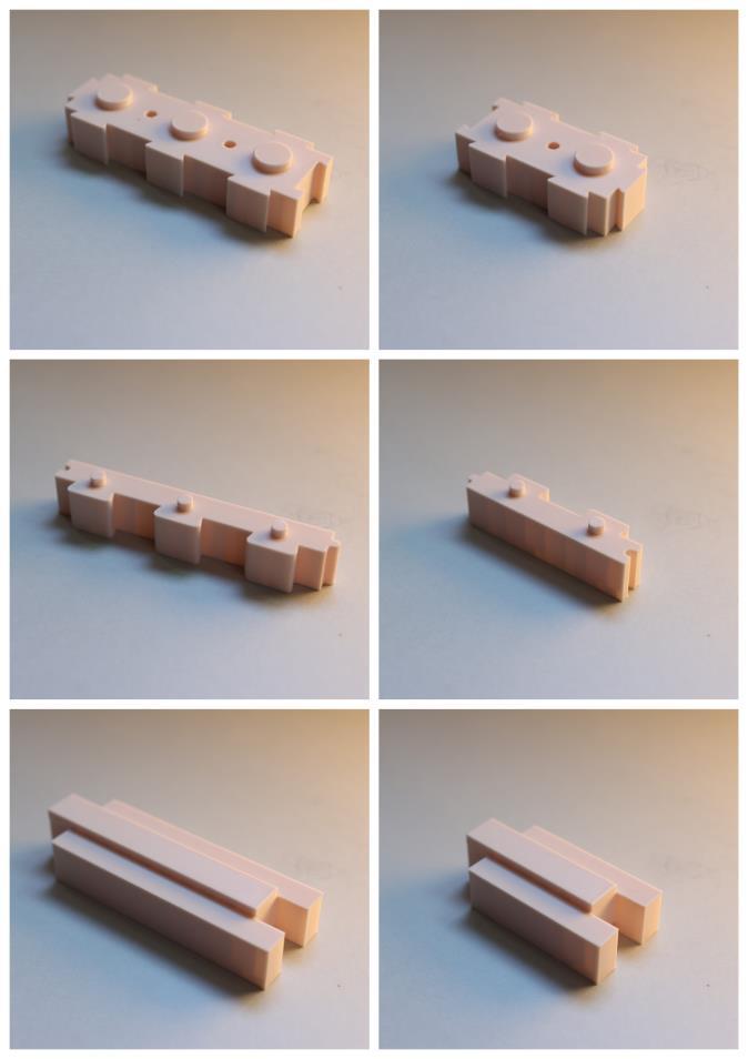Theintegrationof3Dmodelsand3Dprintedprototypesin the design phase is crucial for optimizing the interlocking features,structuralintegrity,andmaterialefficiencyofREBLOCKs. These digital tools allow for precise visualization and iterative refinement of designs, ensuring that specific features enhance the blocks' performance or ease of assembly.