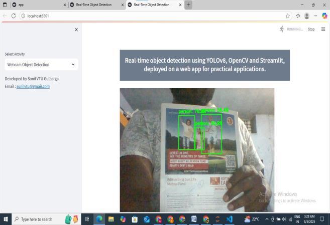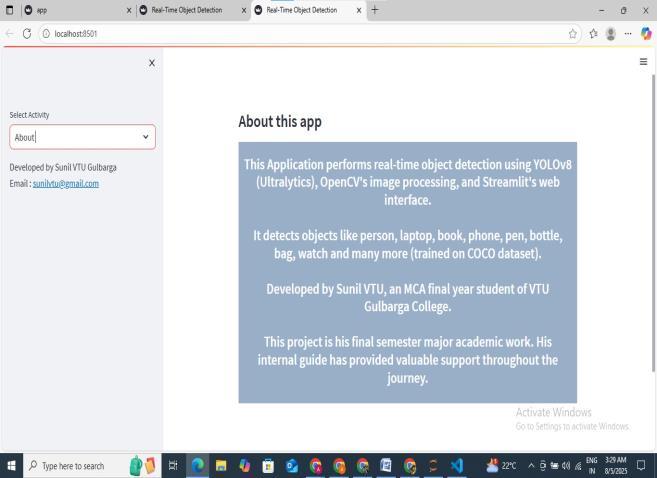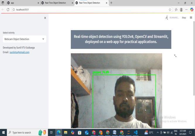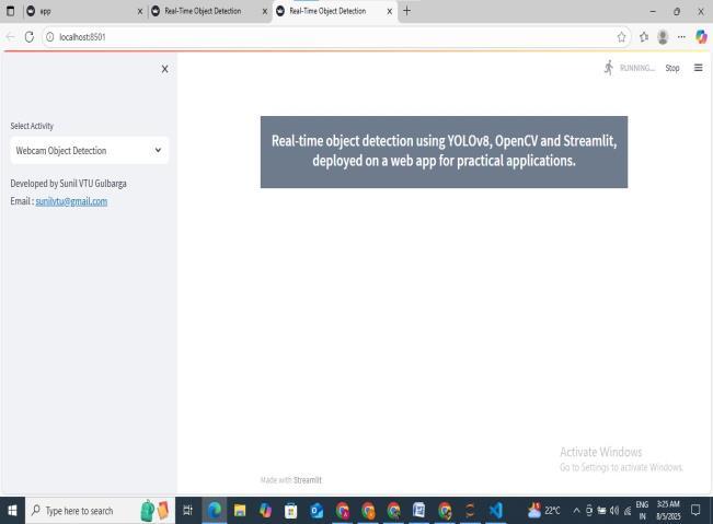 The Real-Time Object detection System successfully demonstrates the application of Artificial Intelligence and Machine Learning in solving real-world problems. By integratingstate-of-the-artobjectdetectionmodelswithlive video streams, the system is capable of identifying and classifyingmultipleobjectsaccuratelyandefficiently.