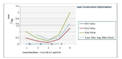 Fig -1:LeanConstructionOptimization:Functionvalues andmovingaveragesforfunctionsA(1), B(2),C(3),andD(4)