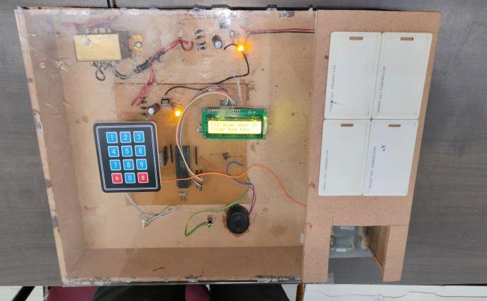 AmicrocontrollercontrolstheRFIDreader,keypad,and LCD display to avoid manual mistakes and external interference. The last vote tally is shown on the LCD screenandcanbesavedinEEPROMforrecordpurposes. The system also provides computer interfacing through RS232forsecuredatatransfer.