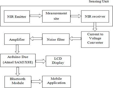 Thesystemcanmonitorglucoselevelinaperson'sbloodbyutilizationofNIRlightemittedfromaspecializedsourceanda photodetectorthatissituatedontheoppositesideofthefingertip.When NIRlighthitsthebiologicaltissue, intheblood. Portion of the light is absorbed dependingontheglucoselevels,whiletheotherisallowed to pass through the fingertip. Thestrengthofthetransmittedlightvariesaccordingtothequantityofglucosepresentintheblood,makingitpossibleto estimatetheconcentration.