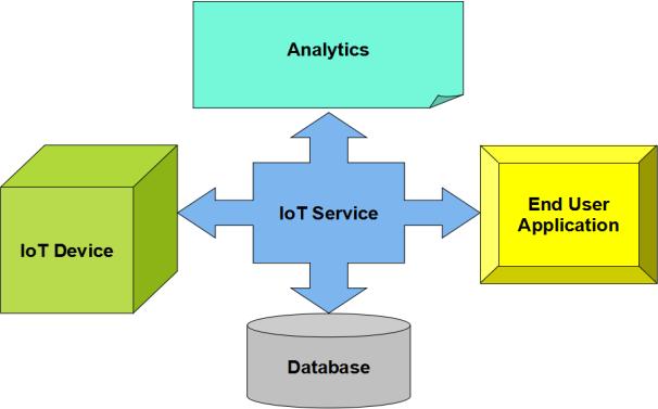 The internet of things (IOT) represent a system made up of 'connected things'. These things generally consist part of an embeddedoperatingsystemandtheabilitytocommunicatewiththeinternetorwiththe'neighboring'things.Oneofthe coreelementsofagenericIoTsystemthatactsasabridgeforvarious'things'isanIoTservice.Aninterestingimplicationof 'things'thatmakeuptheIoTsystemsisthatthingsalonecannotdoanything.Theymustatleastbecapableofconnectto other 'things'. However, the real power of IoT is obtained when the 'things' connect to a 'service' either directly or through other'things'.Insuchsystems,theserviceactsasaninvisiblemanagerbyofferingfunctionalities thatrangefrom simple data collection and monitoring to complex data analytics. The diagram below shows where an IoT service is positioned.