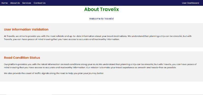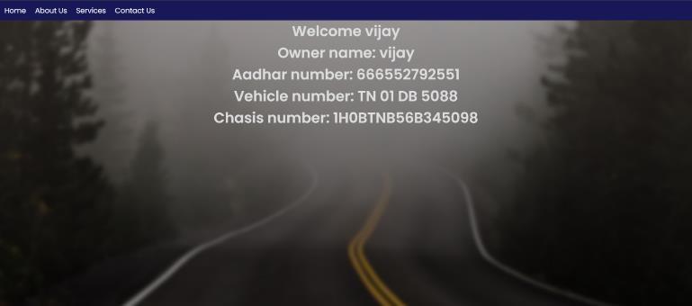The web application includes a login page where registereduserscanauthenticateusingtheirusernameand password. PHP verifies these credentials against a MySQL database. Upon successful login, the system retrieves and displays the user’s vehicle information such as vehicle numberandchassisnumberforverification.Theregistration pageenablesnewuserstocreateanaccountbysubmitting required details. PHP is used to validate and sanitize the input beforesecurelystoringitinthedatabase. Theabout us page shares information about the project's purpose, mission, and team, helping users understand the backgroundoftheapplication.Thecontactuspagefeatures a form where users can submit inquiries or feedback, whicharehandledusingPHPtoeithersendemailsorstore them in the database. The services tab is the application's core feature.Users can enter sourceanddestination details toreceiveinformationonroadconditions,trafficsignalsand route status. PHP connects to the database to fetch this data, which is then presented in a clear, user-friendly format. The system also uses QR code technology to securely store and retrieve vehicle- related information. Uponlogin,theuser’sQRcodeisscannedtoextractdetails like vehicle number and chassis number, which are then displayedonthewebpageforverification.
