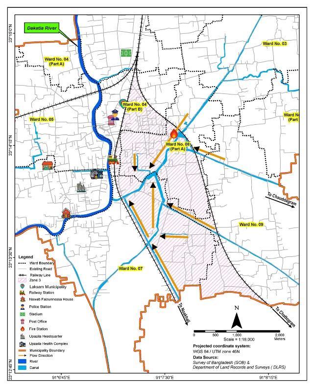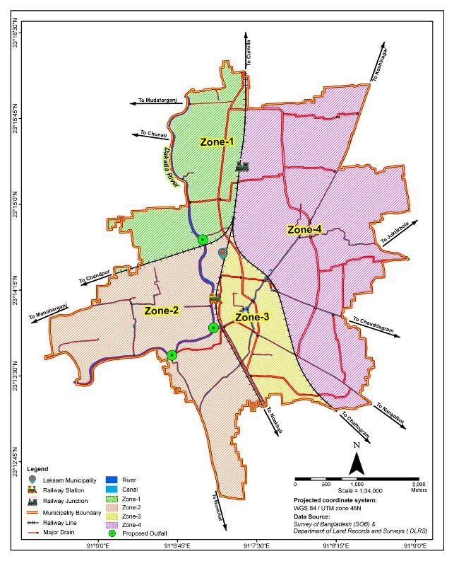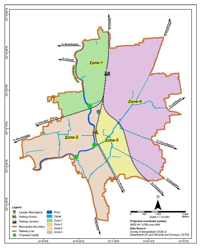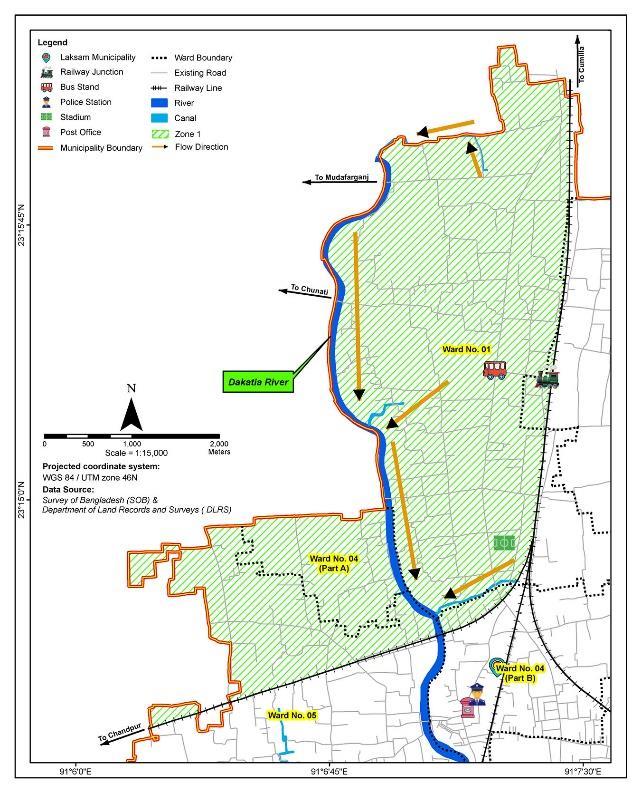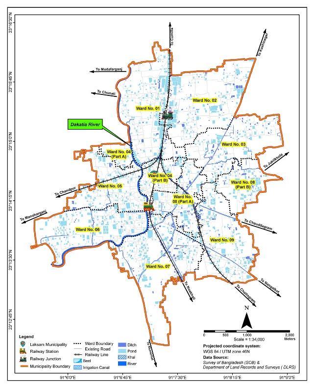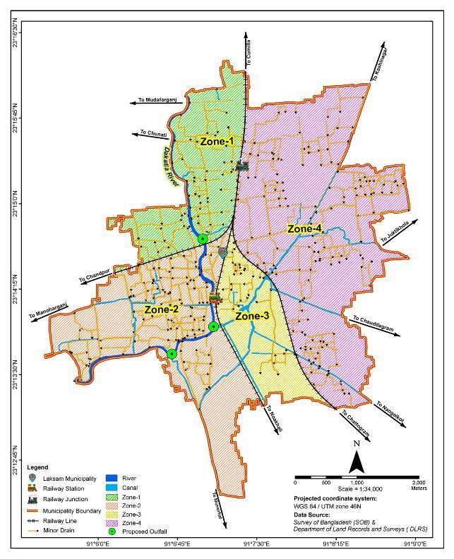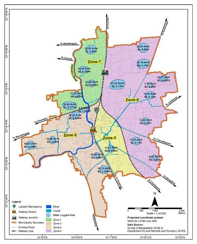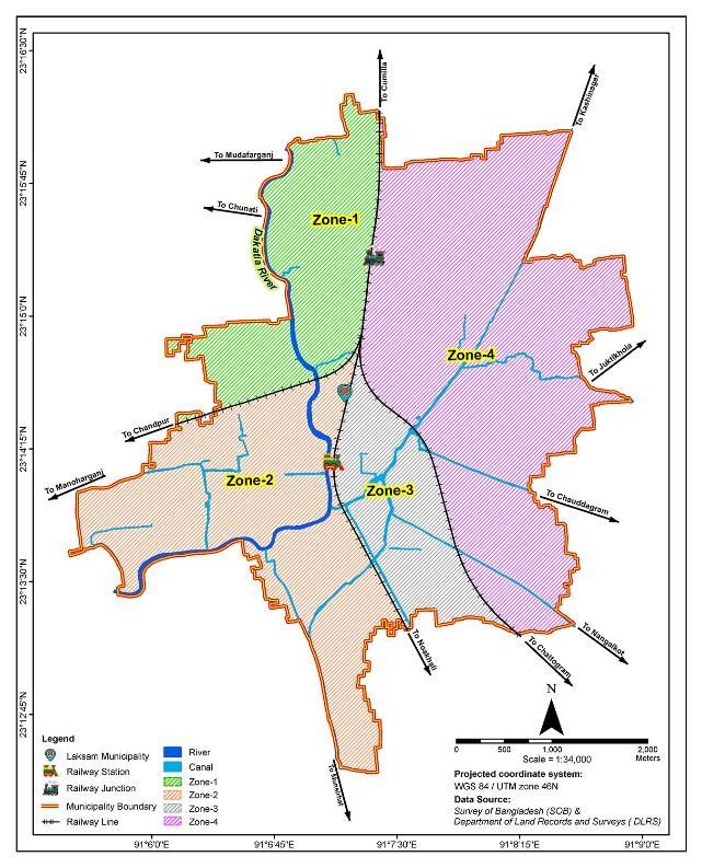 Atotalpopulationof1,02,562in9Wards,theMunicipality hasalandareaof19.63sq.km(4851.31acres)[4].Because ofthedominanceofagriculture,themunicipalityisnotideal. The city is well known as a Railway Junction from the beginning of the 19th century. Its current water body, however,measures710.29acres(14.64%)[4].Additionally, the primary drainage basins inside the municipality are defined by the railway-originated boundary line and the major drainage routings that already exist within. Every drainage path, along with the watersheds that they are connectedto,isnatural.Thesenaturalbasinsaredesignated as Zone-1, which faces Cumilla; Zone-2, which faces ChandpurandManoharganj;Zone-3,whichfacesNoakhali
