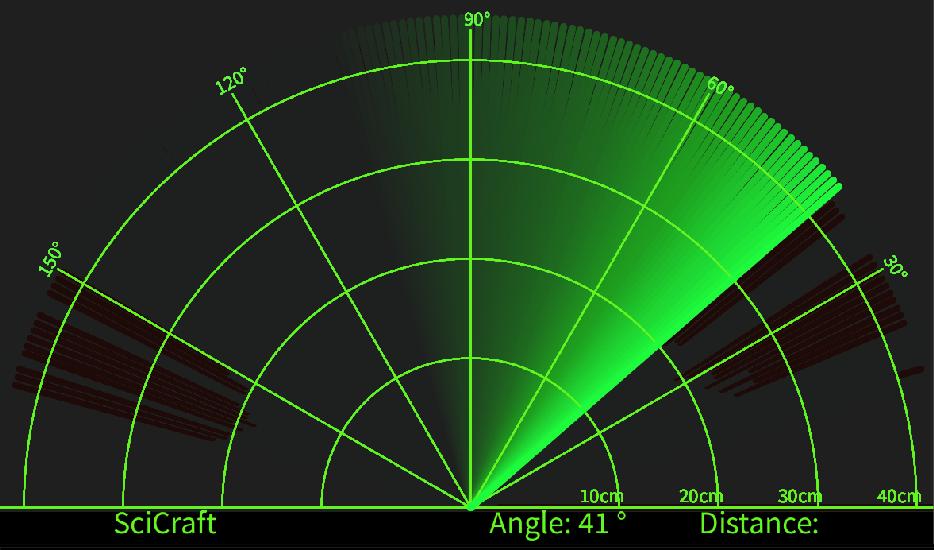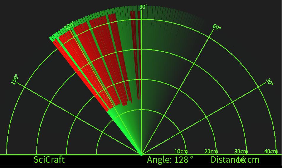 Object class of radar project denotes object which it faces like distance, target/range and angle/direction of position of object. Distance (),method (), angle () method, location () method accepts the necessary value like distance, angle and creates them on GUI to simulate.Figure 4 illustrates line sweep from one-direction to other and smudge is createdisGUIwhereultrasonicsensordetectobstacles.