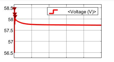 Thevoltagedecayovertime,withaninitialvalueofapproximately58.5V,whichdecreasessteadilytowardsafinalvaluenear 57.5 V. The graph is characterized by an exponential decline, typical of systems experiencing discharging behavior, such as capacitor discharge or battery drainage. At the start, the voltage rapidly drops and then stabilizes, signifying the system's tendencytosettleatasteadystate.Thesharpdeclineisfollowedbyalesssteepcurve,indicatingdiminishingdischargerates.