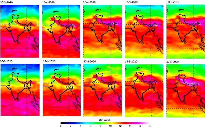 India This graph depicts the variation in UVI values with respecttodifferentdaysinIndia.Thedatashowsagradual increaseoftheUVIduringclear,sunnydaysandastarkdrop duringperiodsofcloudinessorhumidity.Theseoscillations expressthedynamicnatureofsolarUVradiationandpoint totheneedforcontinuedmonitoringwithregardtopublic safetyandenvironmentalawareness.