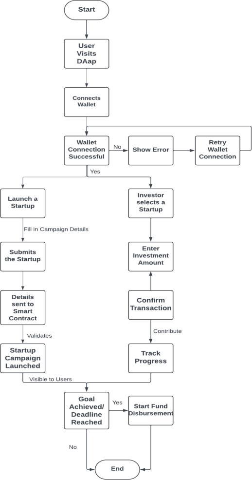 •SmartContractExecution:Callssmartcontractfunctionstorecordinvestmentsandmanagecampaigndetails.