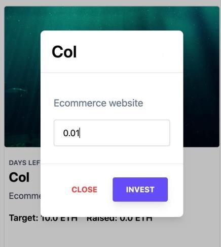 To raise funds, a startup owner mustsetup a campaigninthesystemandsubmit the relevant information such as their startup title, description, fund goal and deadline for the campaign. This information is stored in the blockc al