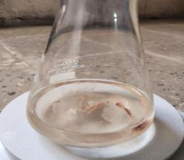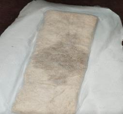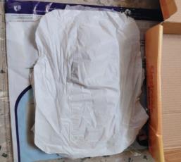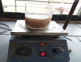 The exposed sample of sanitary pad was subjected to a compostability test conducted under home composting conditions. The aim was to observe the decomposition behavior of the pad components over time in a natural, microbe-richenvironment.Theusedpadwascutintosmall pieces and mixed thoroughly with organic composting materialssuchaspressmud,cowdung,cowurine,kitchen waste,dryleaves,andgardensoil.Thismixturewasplaced in a rotating compost bin with ventilation holes to allow proper aeration and moisture control, simulating a home compostingsetup.Theinitialweightoftheexposedsanitary padpieceswasrecordedas14grams.Afteronemonth,the weightofthepadpieceshadreducedto5grams,showinga