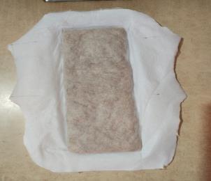 After extraction, the fibers were cut into small pieces for furtherprocessing.Todetermineasustainablemethodfor developing the absorbent core, two different treatments wereapplied:alkalitreatmentandenzymatictreatment.For thealkalitreatment,thefibersweresoakedina5%NaOH solutionforonehouratatemperatureof60-70°C.Afterthe treatment, they were thoroughly washed to remove any residualalkaliandthendriedovernightinahotairovenat 60°C.In the enzymatic treatment, a 0.3% neutral cellulose enzymesolutionwasprepared,andthefibersweresoaked initforonehourat55°C.Similartothealkalitreatment,the fiberswerethenwashedanddried.