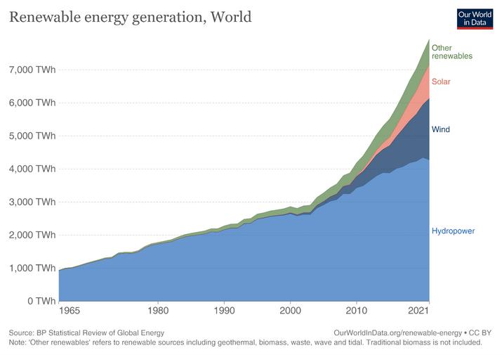 According to estimates by the International Renewable Energy Agency (IRENA), the global technical potential for geothermal energy is around 70,000 MW of electricity generation capacity, which is roughly equivalent to the installed capacity of the entire UK power grid. In comparison, as cited by the Global Water Forum , the annual exploitable hydroelectric energy from financially and environmentally feasible potential sites is estimated to be between 5.42 PWh/year during the dry season to 39 56 PWh/year during the rainy season Hydroelectric energy is the most widely used renewable energy source for the generation of electricity The biggest producer of hydroelectricity is China, although hydro is becoming more popular across the world with top producing countries including the United States, Brazil, Canada, India, and Russia among others More electricity is generated by hydropower than all other renewable sources.
