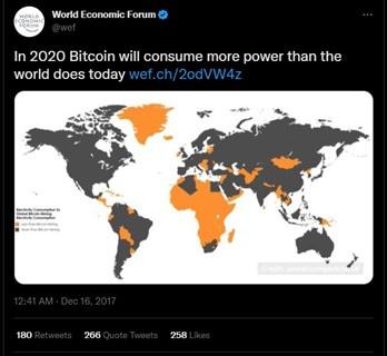 On 15 December 2017, the World Economic Forum (WEF) published an article on its website claiming that by 2020, Bitcoin, the world’s first fully peer to peer digital currency, will consume more energy than the world is able to produce
