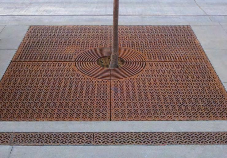 All tree grates are ADA compliant, with a max. opening of 1/2”. “Heel Proof” = 1/4” TREE GRATES 6’ Sq. Heel Proof | Cast Iron | Baked-On-Oil Finish 6’ Sq. Arrayed with 3’ Sq. Panels | Cast Iron | Baked-On-Oil Finish 4’ Sq. Heel Proof | Cast Iron | Baked-On-Oil Finish 5’ x 8’ | Cast Iron | Powder Coat Finish 3’ Sq. | Cast Iron | Powder Coat Finish 4’ Sq. Heel Proof | Cast Iron | Powder Coat Finish EXPLORA MADRAS MERCADO SONOMA Product: 4’ Sq. Heel Proof Tree Grate w/ 24” x 48” Extension Panels Material/Finish: Cast Iron/Raw Design: Mithun Project: Seattle University Sinegal Center for Science & Innovation Location: Seattle, WA RAIN DIVISADERO SPIN