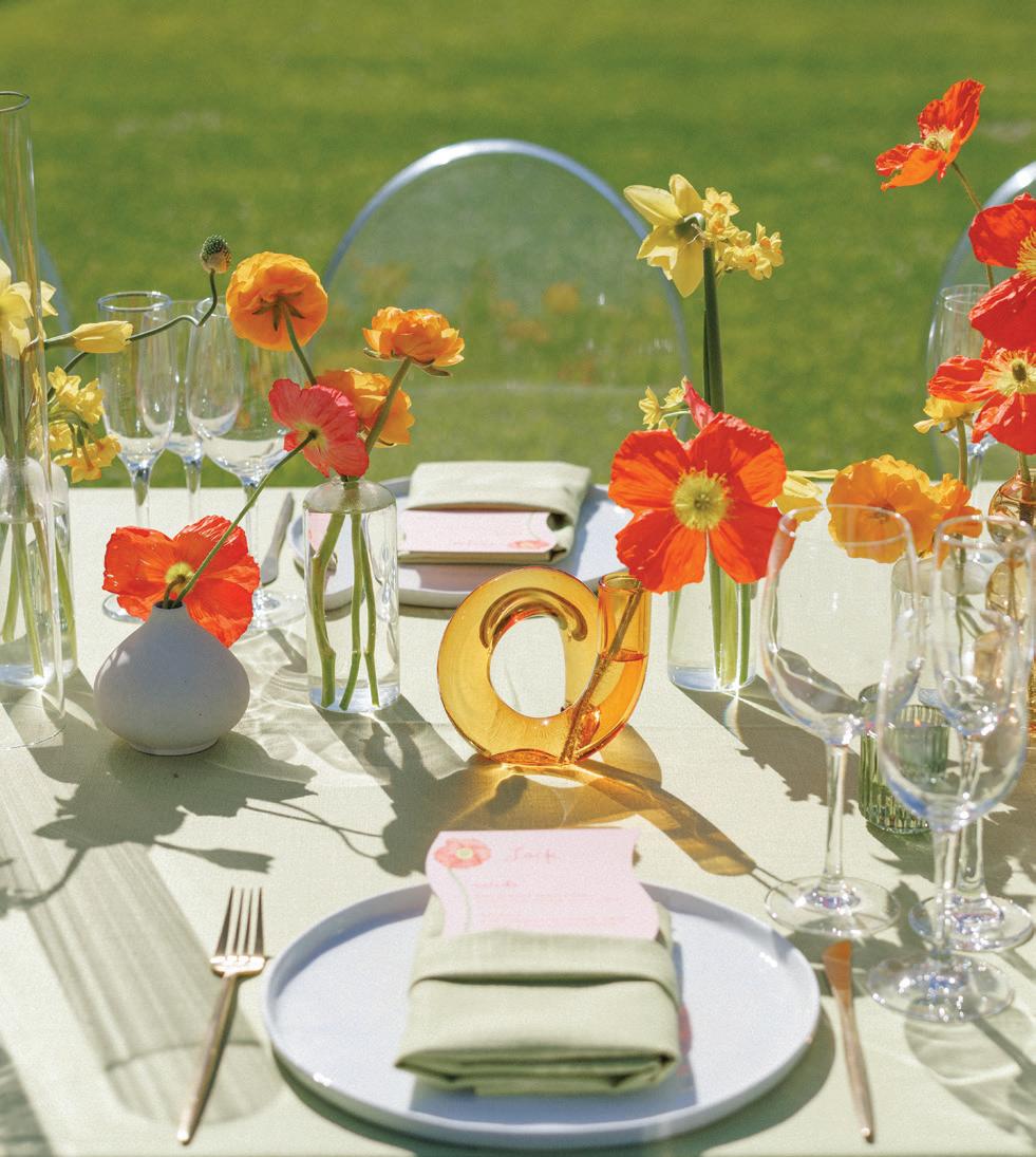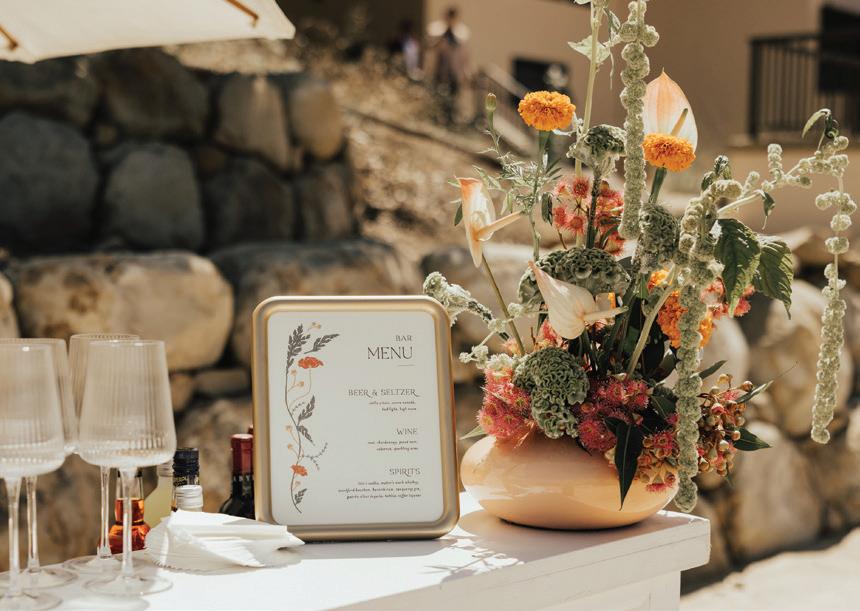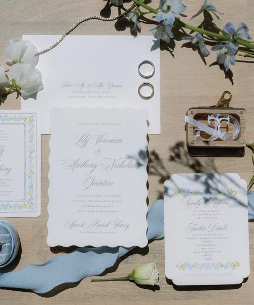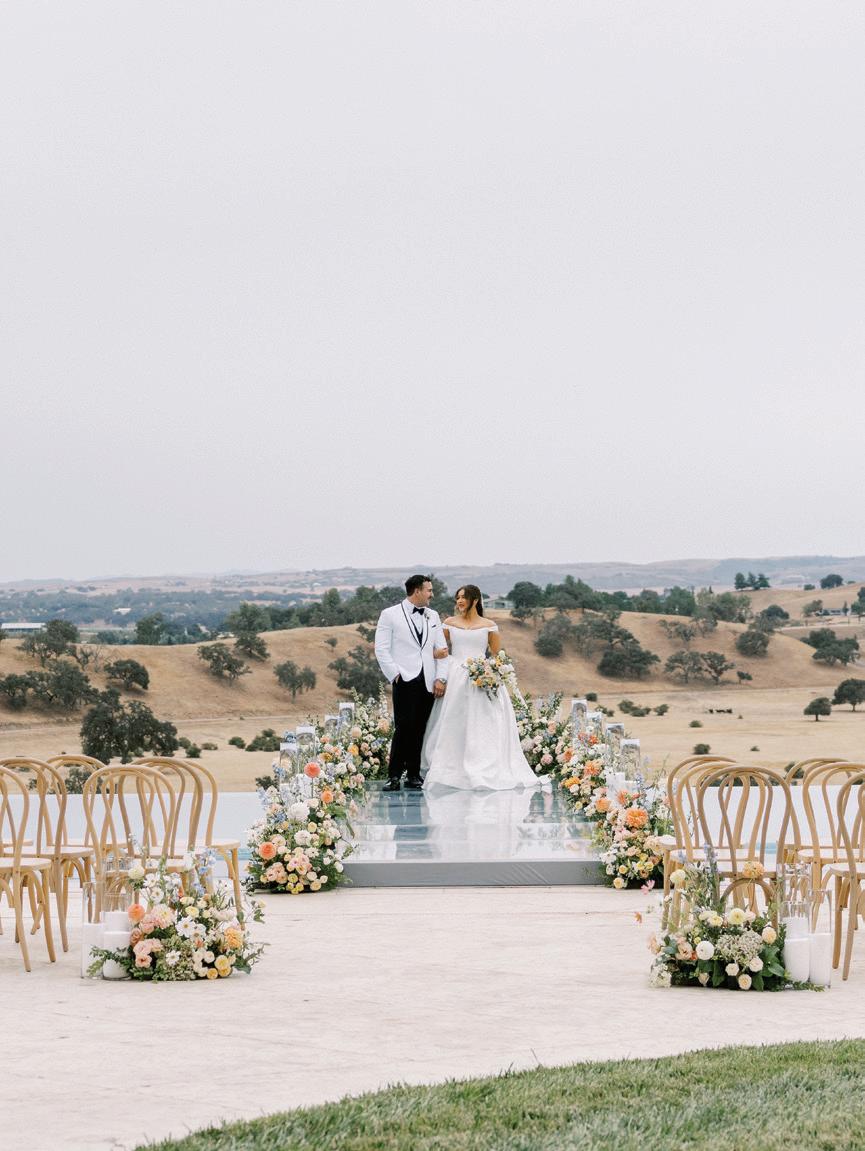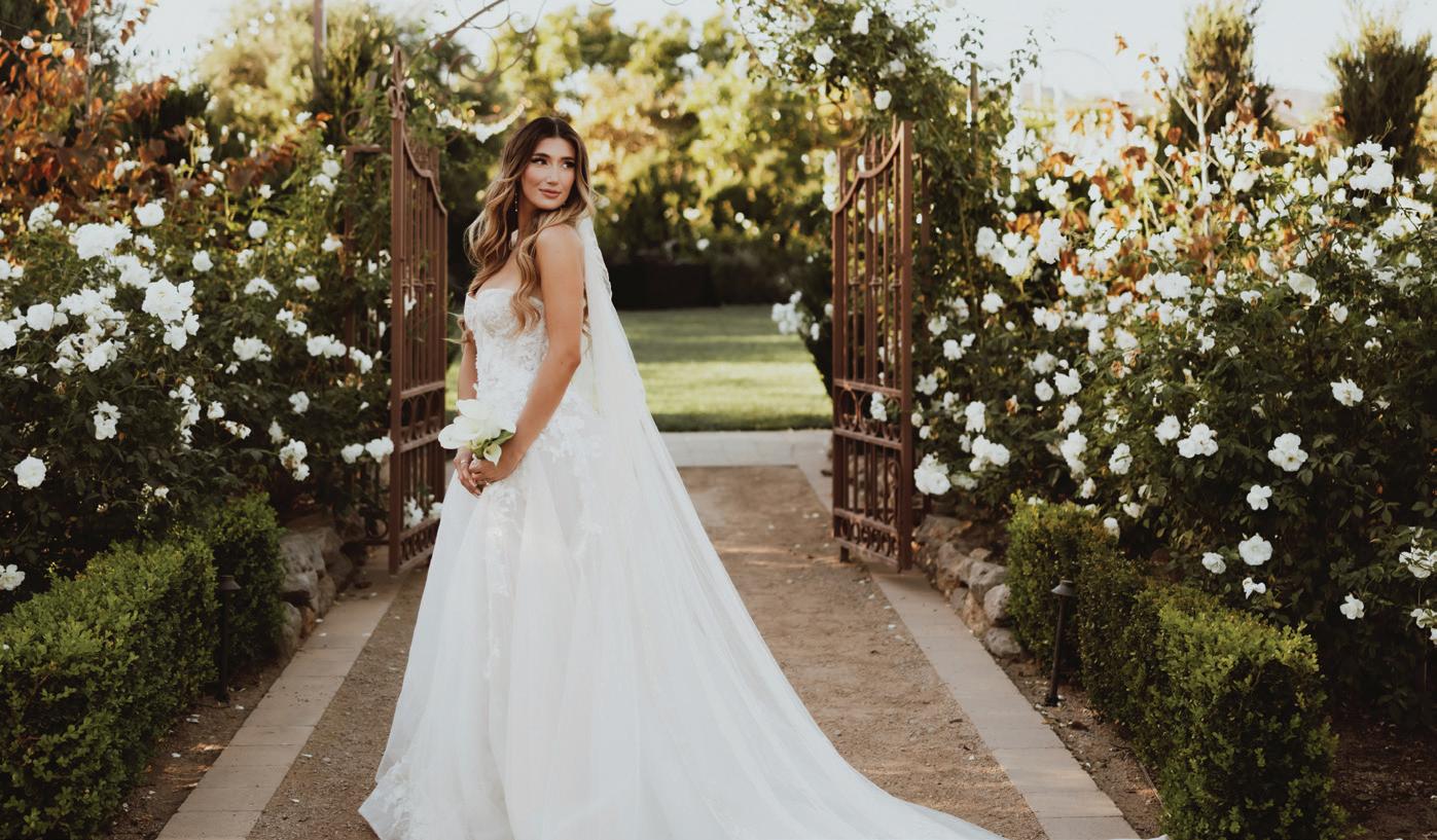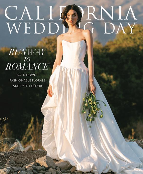 This issue of California Wedding Day celebrates bold, personal choices—from fashion-forward accessories (page 62) like Lucite bangles and lily-adorned chokers to dreamy bridal gowns that blend vintage romance with modern details (page 50).