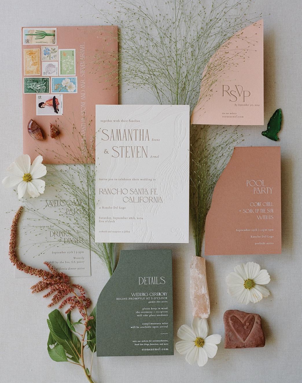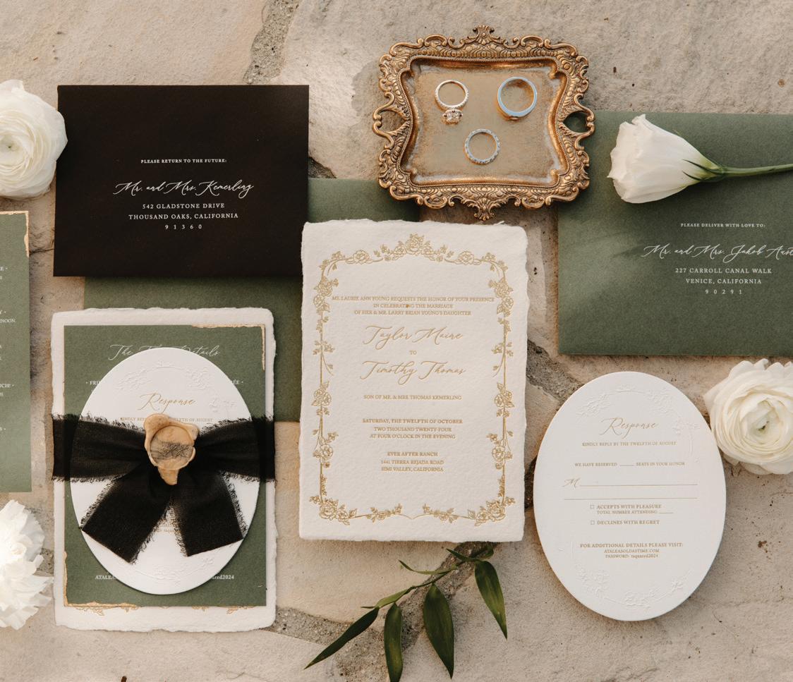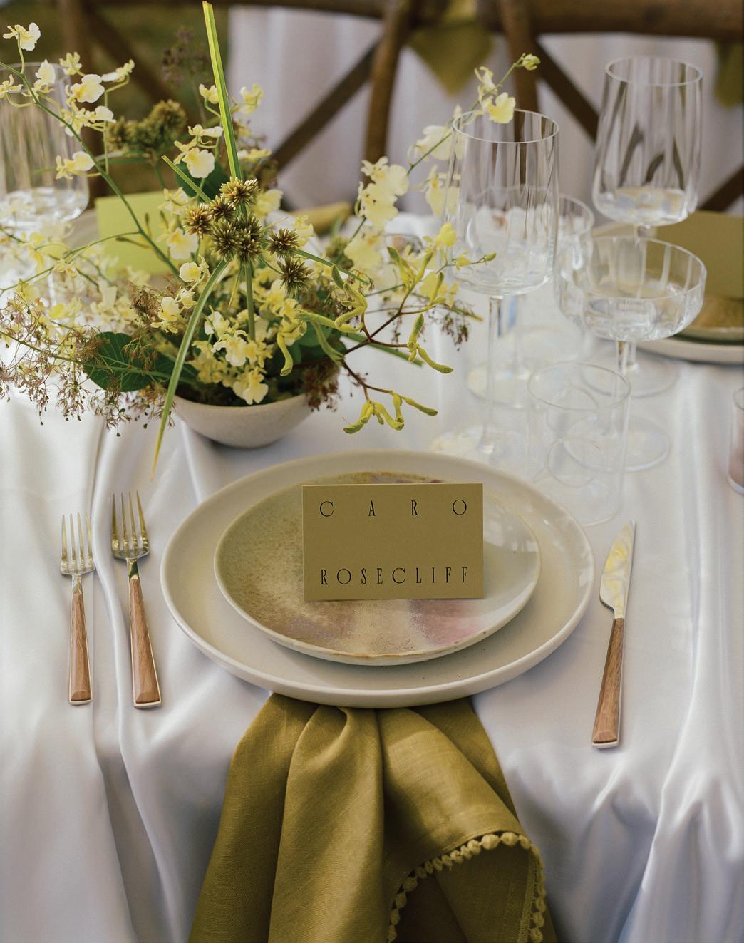 This issue of California Wedding Day celebrates bold, personal choices—from fashion-forward accessories (page 62) like Lucite bangles and lily-adorned chokers to dreamy bridal gowns that blend vintage romance with modern details (page 50).
