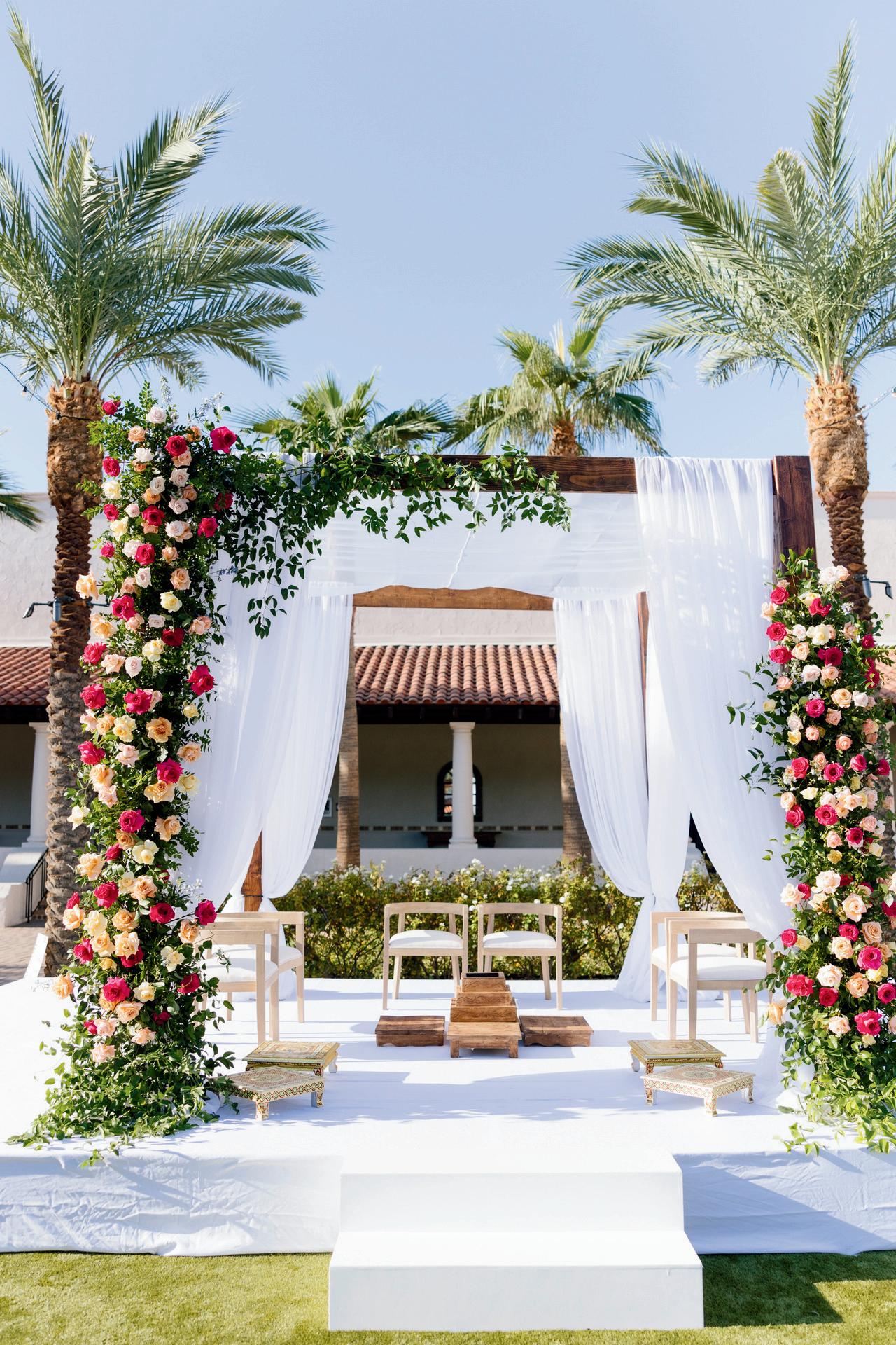 The ceremony altar is elevated to new heights in an ethereal, rosewater-hued design at Topa Vista in Ojai.