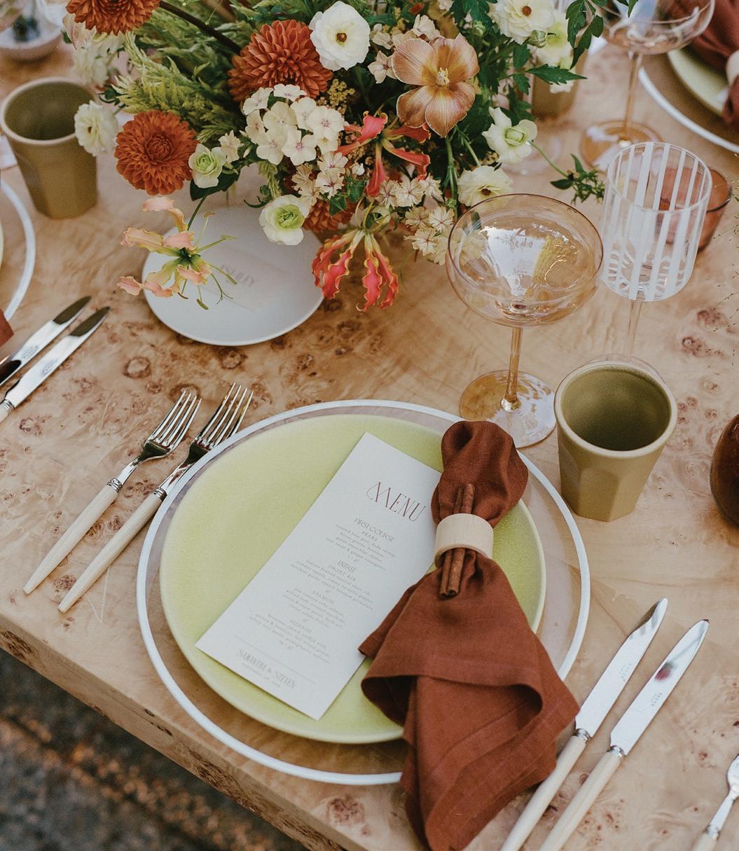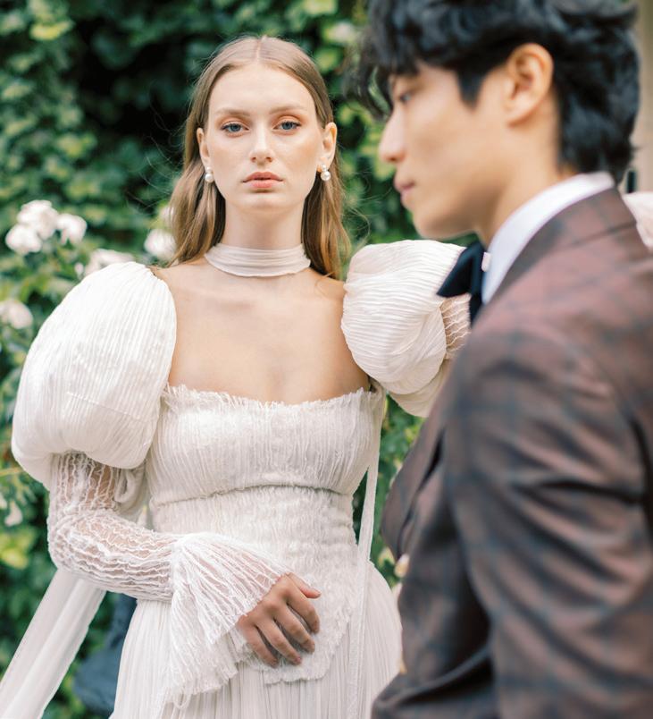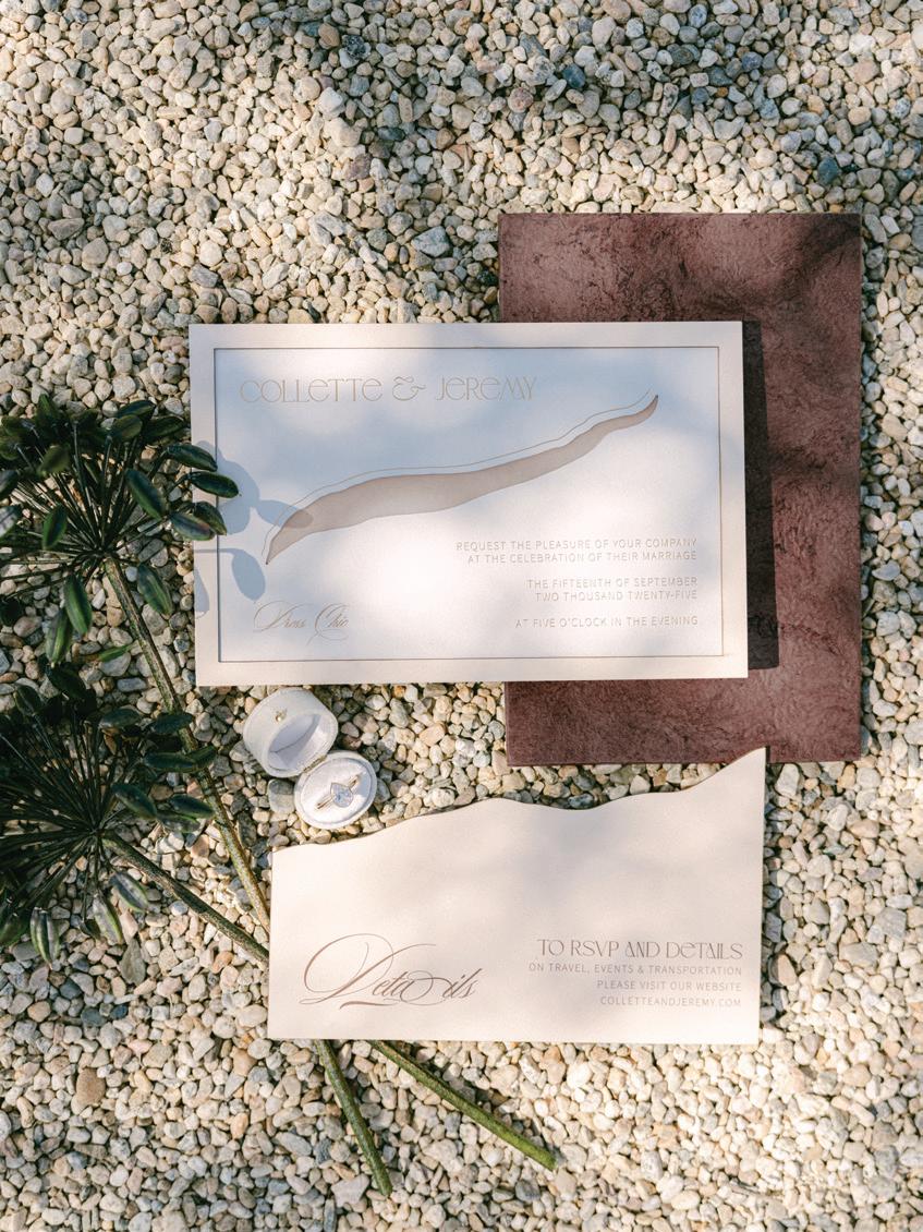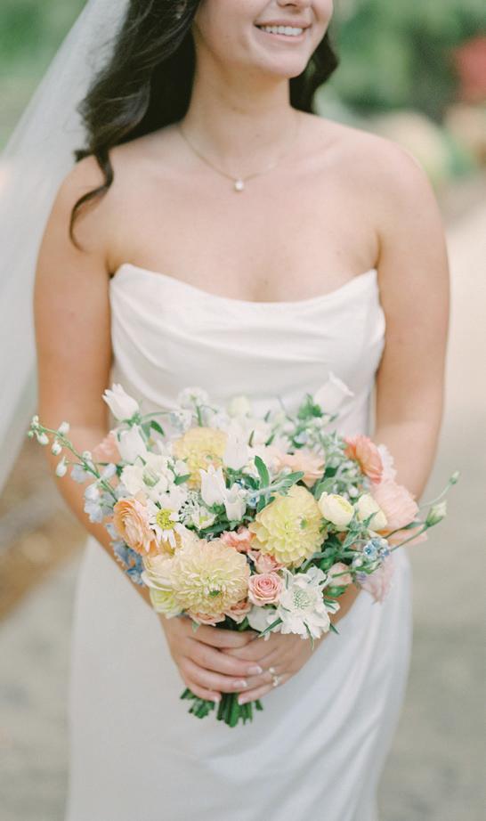 If you’re looking for inspiration that feels authentically you, explore our curated selection of real weddings brimming with heartfelt details (pages 24, 26, 131). We also journeyed to Italy for a little bella vita—from the Amalfi Coast (page 20) to sun-soaked Tuscany (page 38). Plus, we share the latest trends in color palettes (page 32), heels (page 22) and catering (page 36).