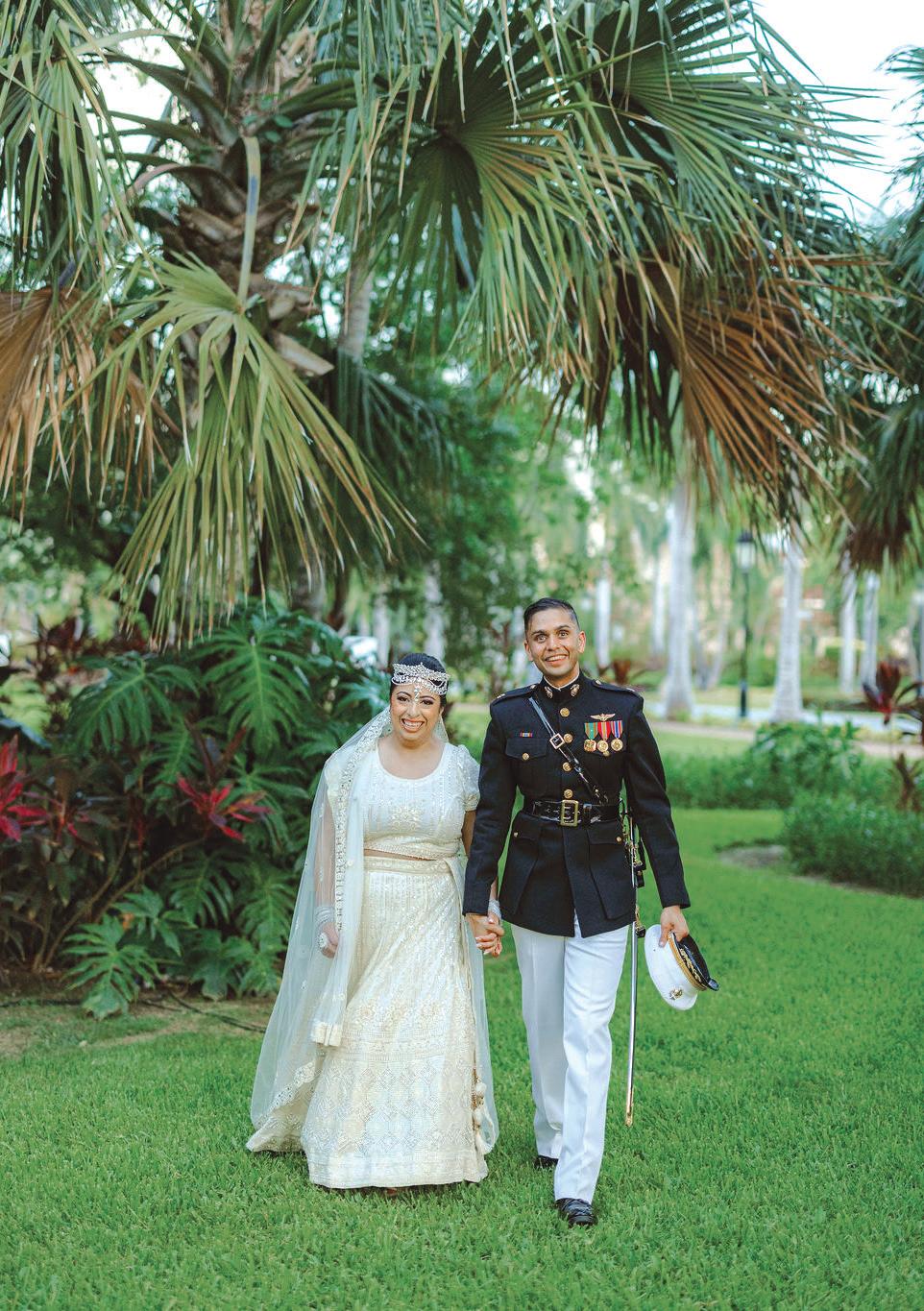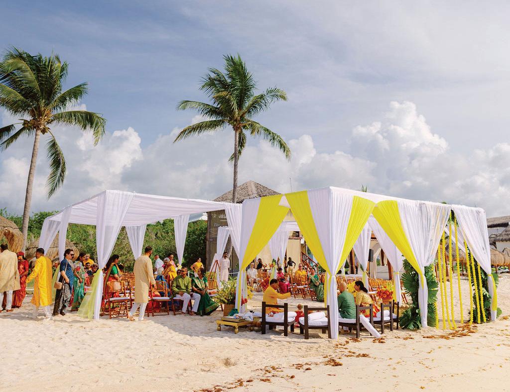 The week opened with a vibrant beachside welcome party and continued with a pre-Hispanic blessing honoring Jasmine’s roots, a military ceremony recognizing Sahil’s service in the U.S. Marine Corps and a vibrant Sangeet where guests experienced an ancient Mayan marriage ritual alongside high-energy Indian performances. The crescendo came with a lively Baraat and a traditional Hindu wedding before closing with an emotional “Grand Finale” reception.