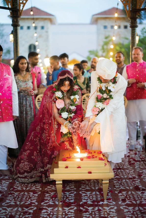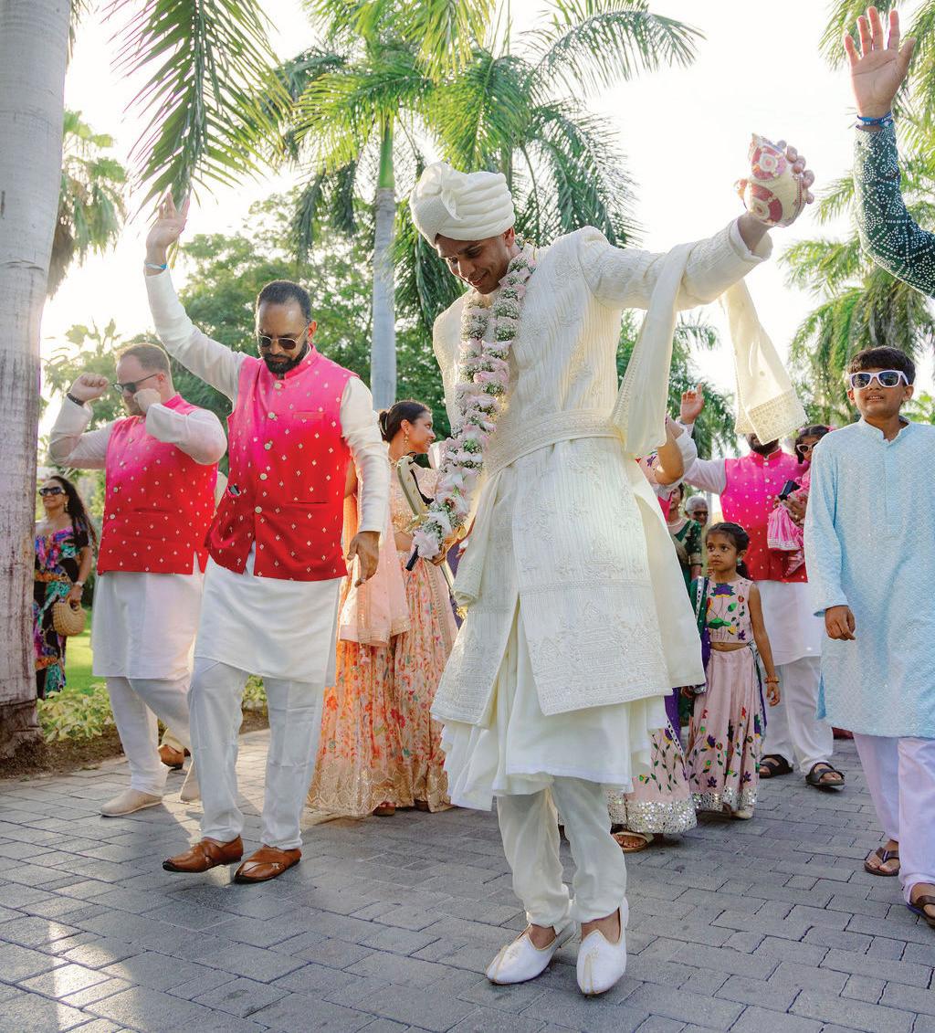 One standout moment came during the Baraat when guests danced down a palm-lined path to the beat of a live dhol, embodying the week’s energy and joy. For Jasmine and Sahil, the celebration was more than a wedding—it was the merging of worlds. “Blend your worlds unapologetically,” advises the couple. “The most beautiful moments come from honoring who you are together.”