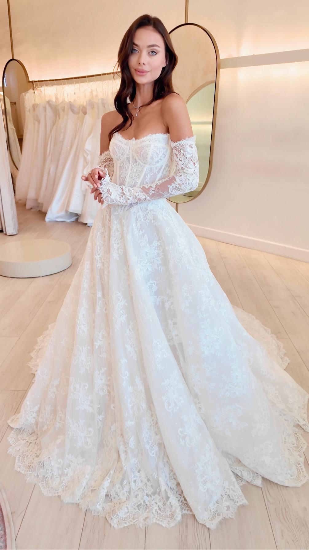 Bridal Attire: ANNE BARGE (ceremony; @annebarge); NETTA BENSHABU (reception, after party; @nettabenshabu.official); BELLA BELLE SHOES (@bellabelleshoes) all from E.A. BRIDAL (@e.a.bridal); BRIDAL HEIRLOOM BY AS (alterations;
