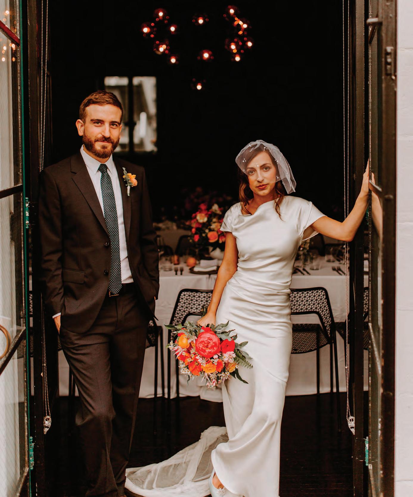 “Wellsley” A-line bridal gown by Allison Webb from JLM Boutique in Los Angeles. Hair and makeup by Chiali Meng Artistry and bouquet by Creative Light. Photography by Jenny Quicksall. More details on page 48.