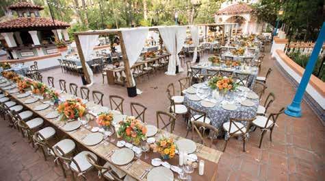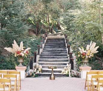 Rancho Las Lomas is a whimsical, enchanting property hidden away in the foothills of Orange County. With surroundings that are rich in history and full of unique architectural details, this stunning venue offers breathtaking spaces for any special occasion. The Spanish-style architecture, paired with modern design details and lush gardens, creates a dreamy wedding venue for your special day. Enjoy a ceremony under the stars in El Teatro, an open-air theater nestled beneath beautiful oak and sycamore trees, framed by a stunning marble stage. For a charming ceremony or grand celebration, La Terraza features a gorgeous wooden staircase, beautiful greenery, earthy cobblestone, and white-washed stucco details. Transition to the luxurious Grand Salon for an indoor affair, with intricate stained-glass windows, lovely French doors, and ample space for an event of any kind. With outstanding catering and impeccable service from 24 Carrots Catering and Events, this one-of-a-kind venue is the perfect setting for you to say “I do.”