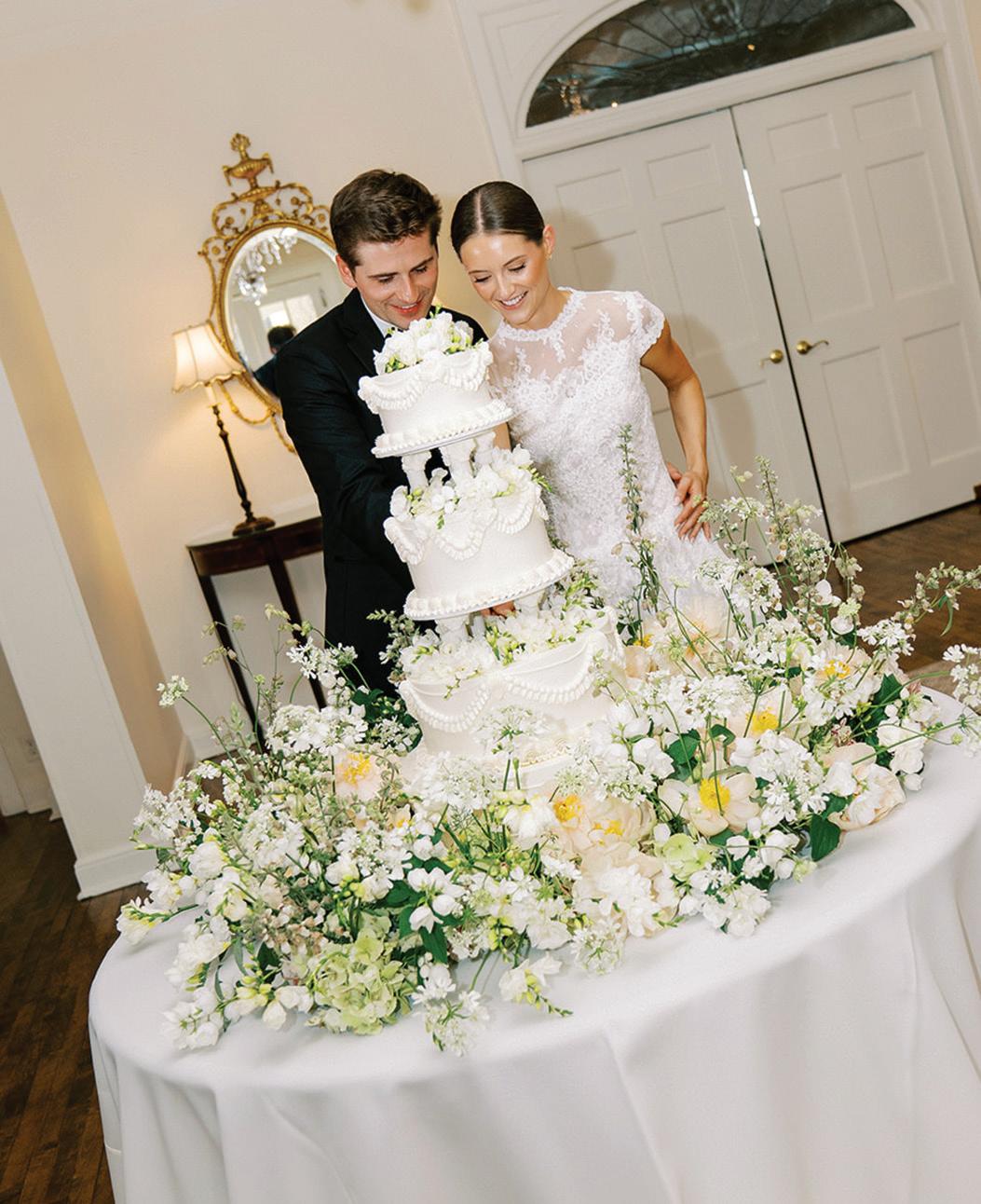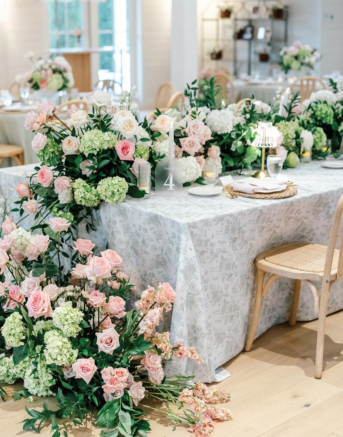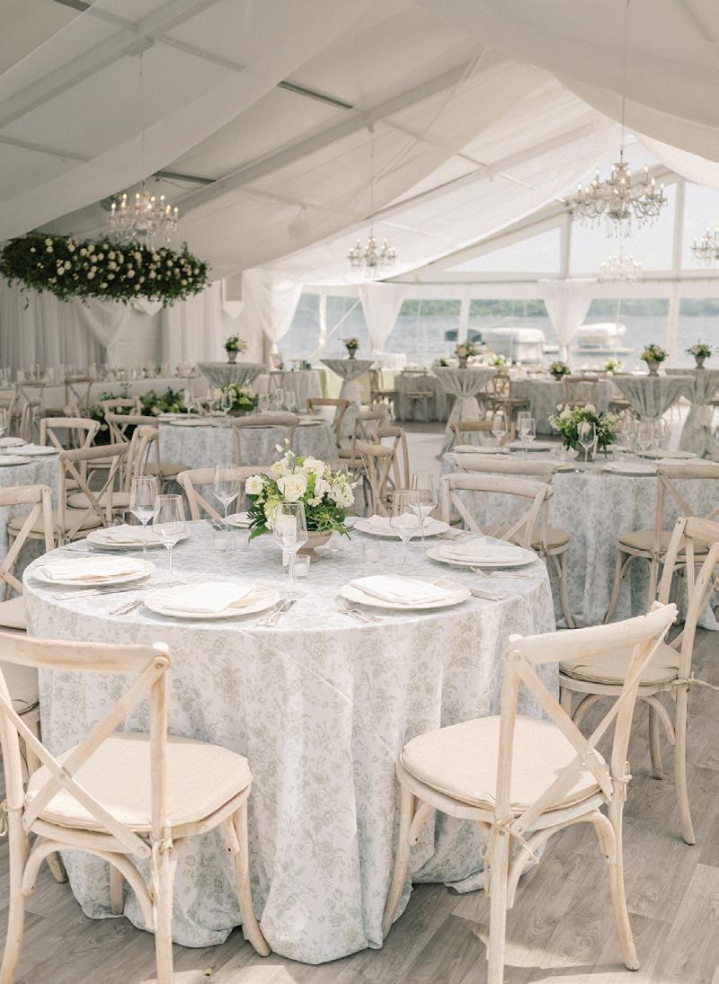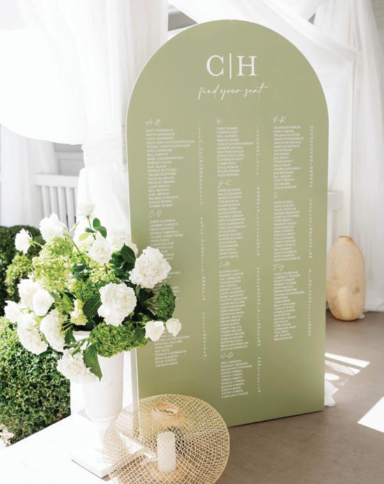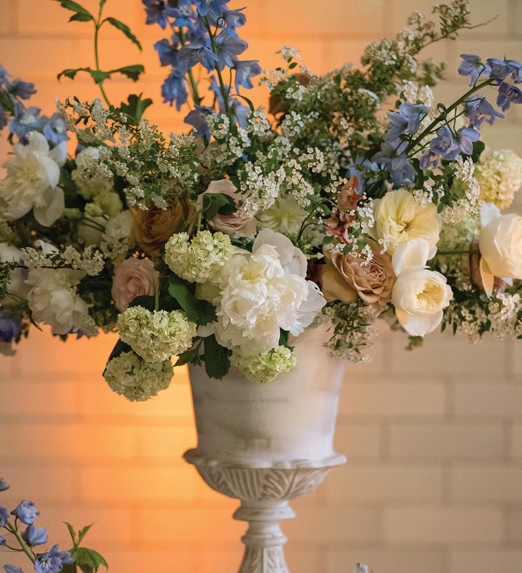 Meredith and Daniel’s wedding was a luminous celebration of love, faith and family, radiating timeless spring elegance. Their story began in college and over seven years, with more than five spent apart, they nurtured their bond through heartfelt letters. These cherished notes became a central theme of the day, inspiring table numbers, a seating chart and a vintage mailbox card box that celebrated their unique journey. Drawing inspiration from the soft beauty of spring, the couple chose a coastal palette of blues, crisp whites and hints of green and silver. The ceremony at Westminster Presbyterian Church reflected the depth of their faith, culminating in a joyful grand exit beneath ringing bells and waving streamers before departing in Daniel’s family’s vintage 1950s Rolls-Royce. The reception at The Beach Club blended romance with waterside sophistication. Whimsical, flowing floral designs in shades of blue, green and neutrals graced the space in clear vases, chinoiserie vessels and silver urns. Layered linens in floral, striped and velvet patterns added texture and visual interest to every table. Guests sipped signature cocktails, toasted with champagne and enjoyed a string quartet during cocktail hour before dancing to a live band under candlelight and shimmering lake views. Every detail, from curated desserts and personalized touches to the soft, ethereal lighting, spoke to the couple’s love story and the legacy of their families. The day was not only a reflection of Meredith and Daniel’s enduring devotion, but a testament to the beauty of love, connection and celebration. — Laura Cross