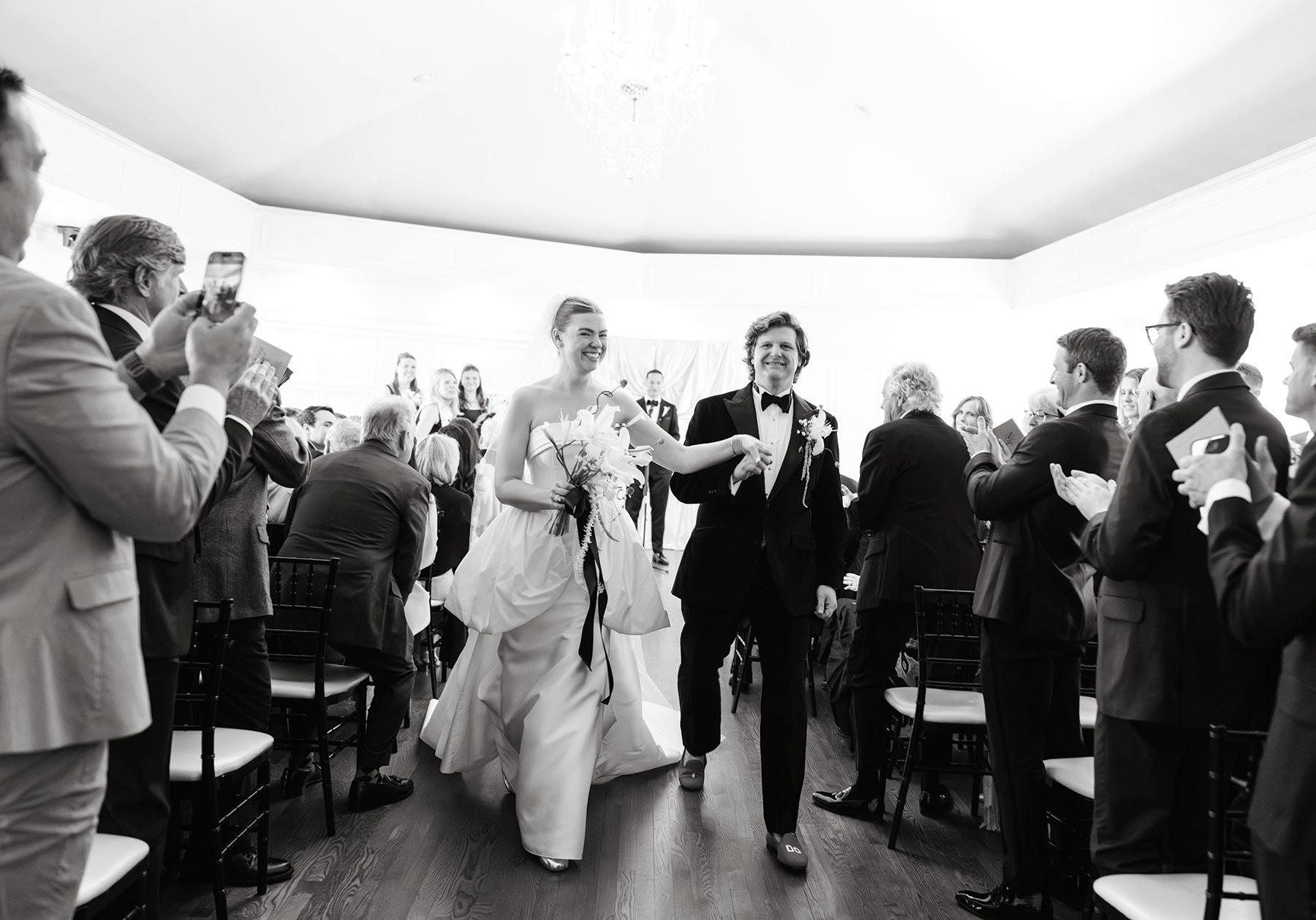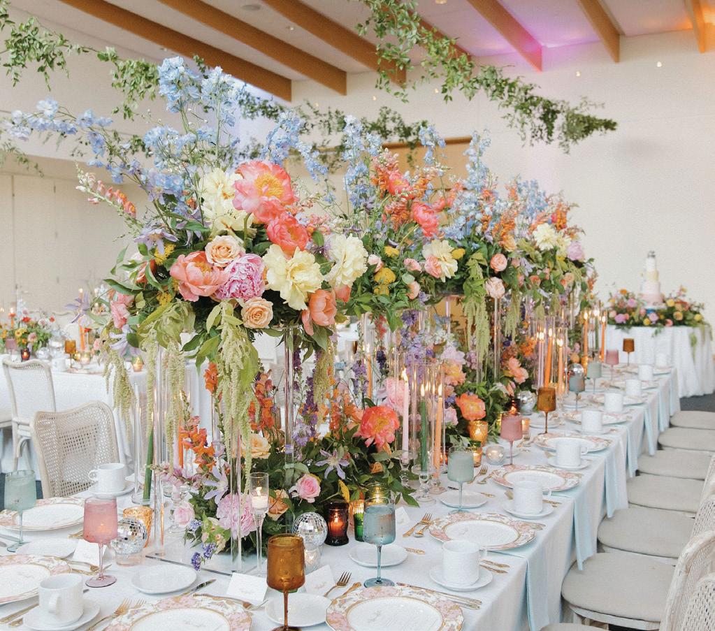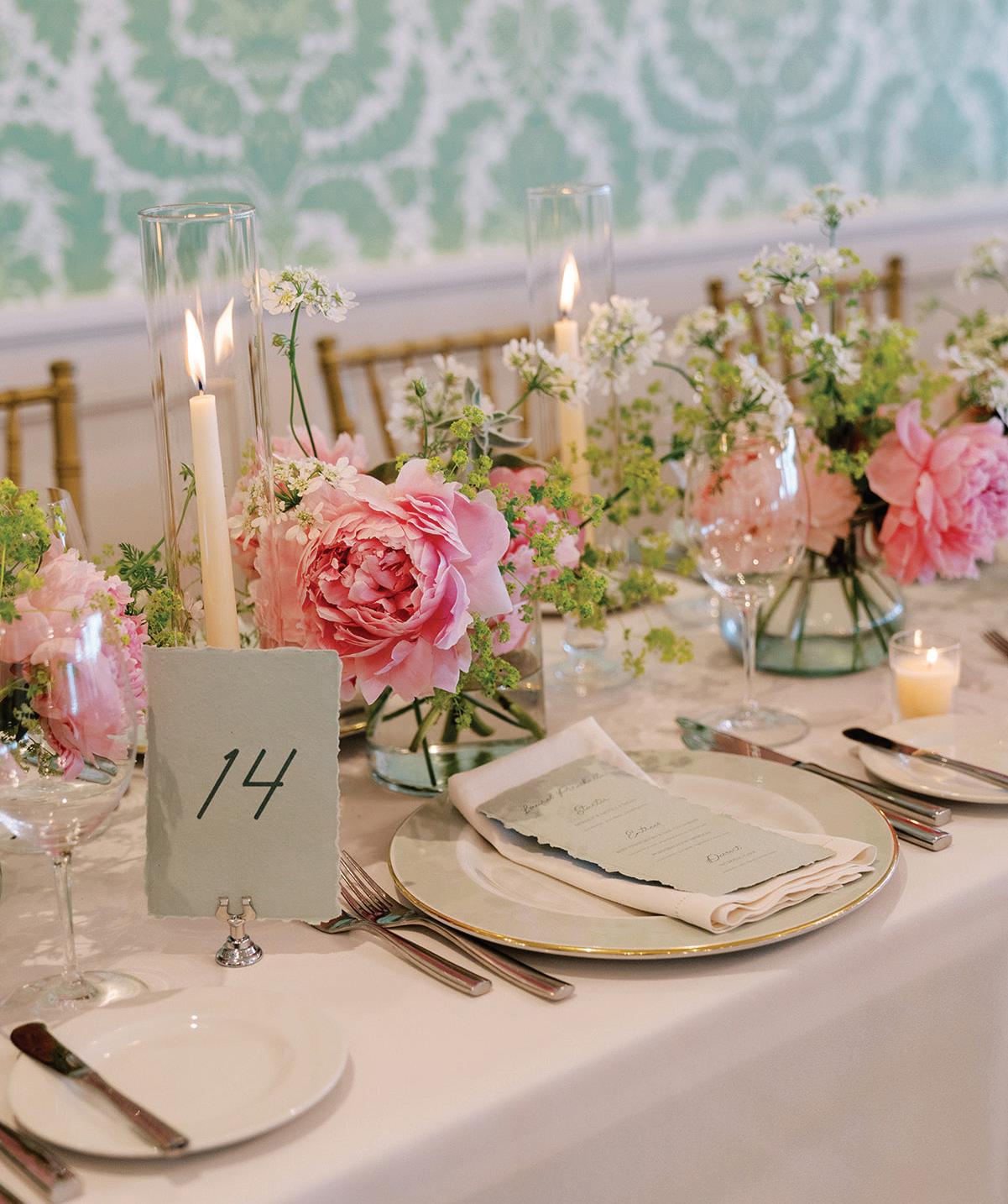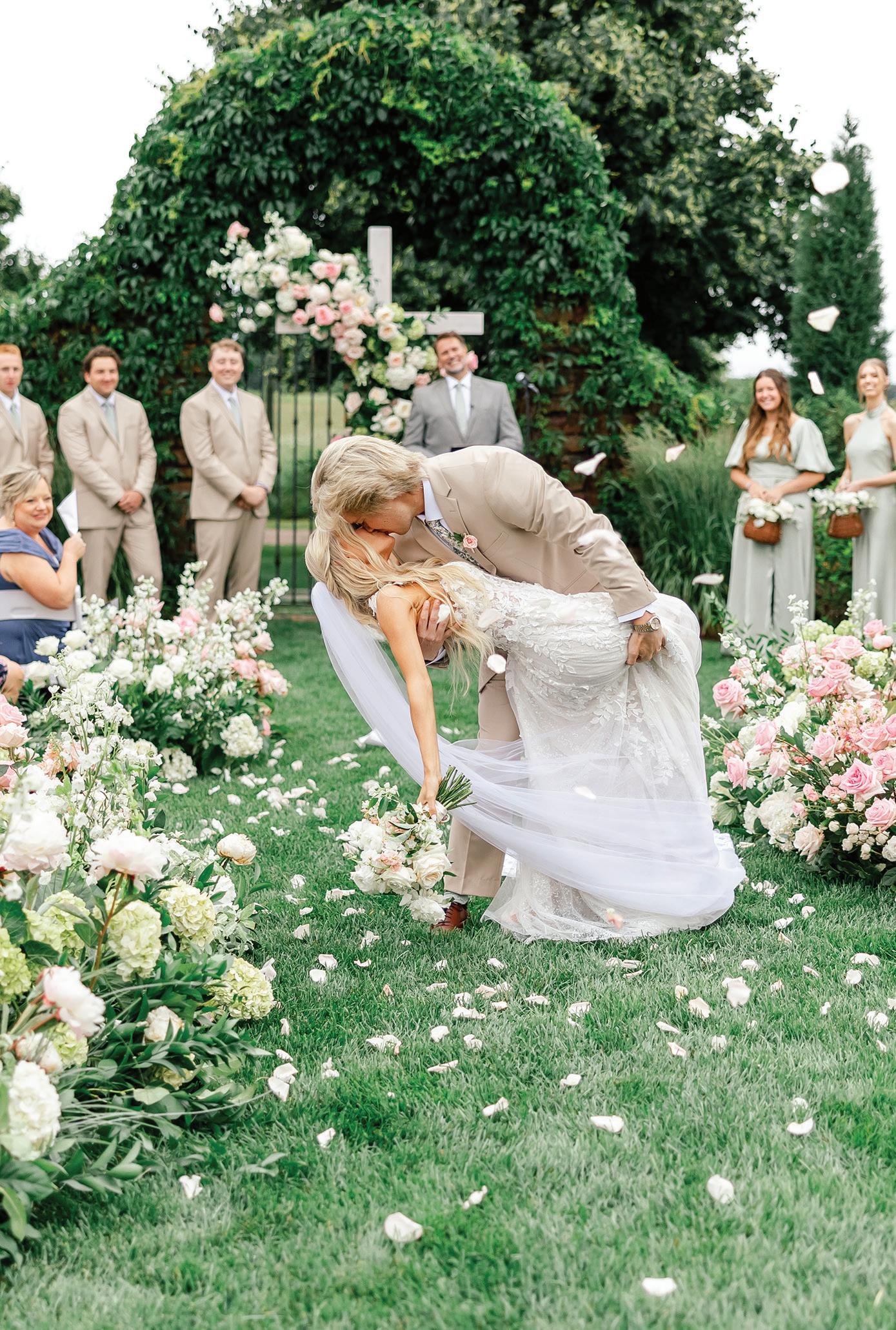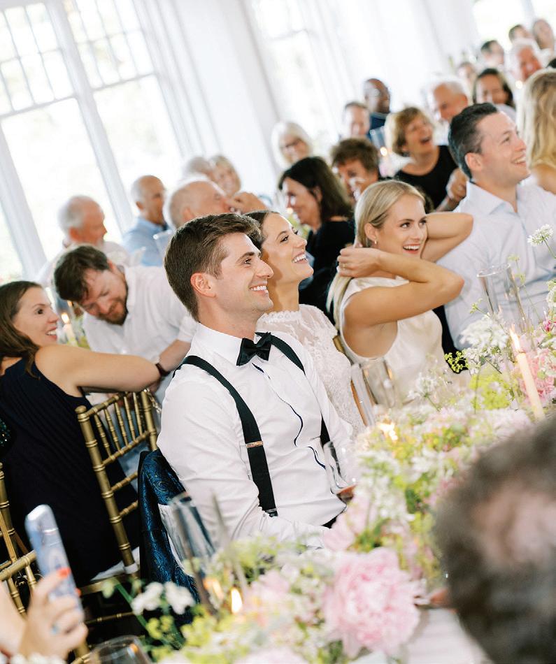 Meredith and Daniel’s wedding was a luminous celebration of love, faith and family, radiating timeless spring elegance. Their story began in college and over seven years, with more than five spent apart, they nurtured their bond through heartfelt letters. These cherished notes became a central theme of the day, inspiring table numbers, a seating chart and a vintage mailbox card box that celebrated their unique journey. Drawing inspiration from the soft beauty of spring, the couple chose a coastal palette of blues, crisp whites and hints of green and silver. The ceremony at Westminster Presbyterian Church reflected the depth of their faith, culminating in a joyful grand exit beneath ringing bells and waving streamers before departing in Daniel’s family’s vintage 1950s Rolls-Royce. The reception at The Beach Club blended romance with waterside sophistication. Whimsical, flowing floral designs in shades of blue, green and neutrals graced the space in clear vases, chinoiserie vessels and silver urns. Layered linens in floral, striped and velvet patterns added texture and visual interest to every table. Guests sipped signature cocktails, toasted with champagne and enjoyed a string quartet during cocktail hour before dancing to a live band under candlelight and shimmering lake views. Every detail, from curated desserts and personalized touches to the soft, ethereal lighting, spoke to the couple’s love story and the legacy of their families. The day was not only a reflection of Meredith and Daniel’s enduring devotion, but a testament to the beauty of love, connection and celebration. — Laura Cross
