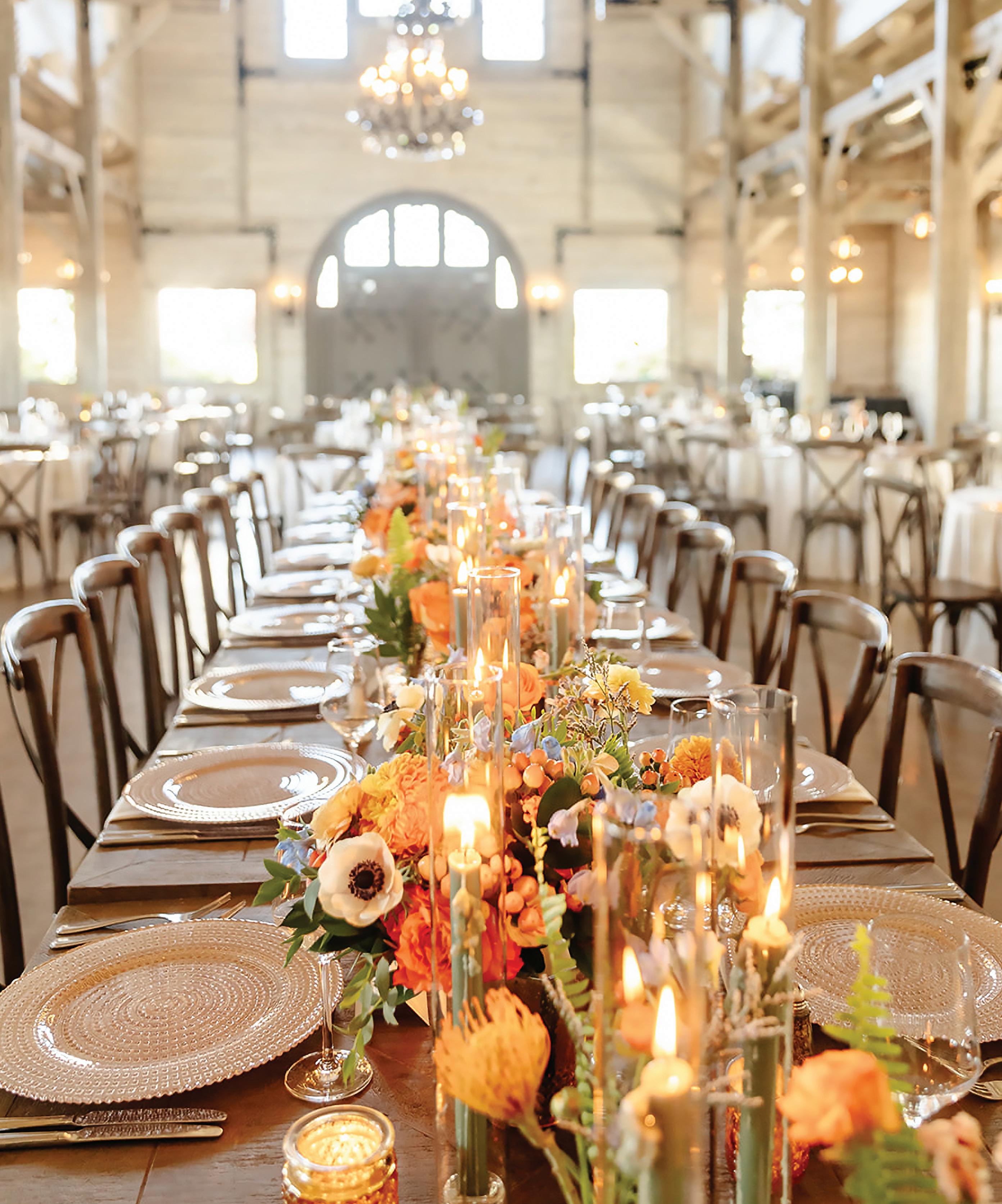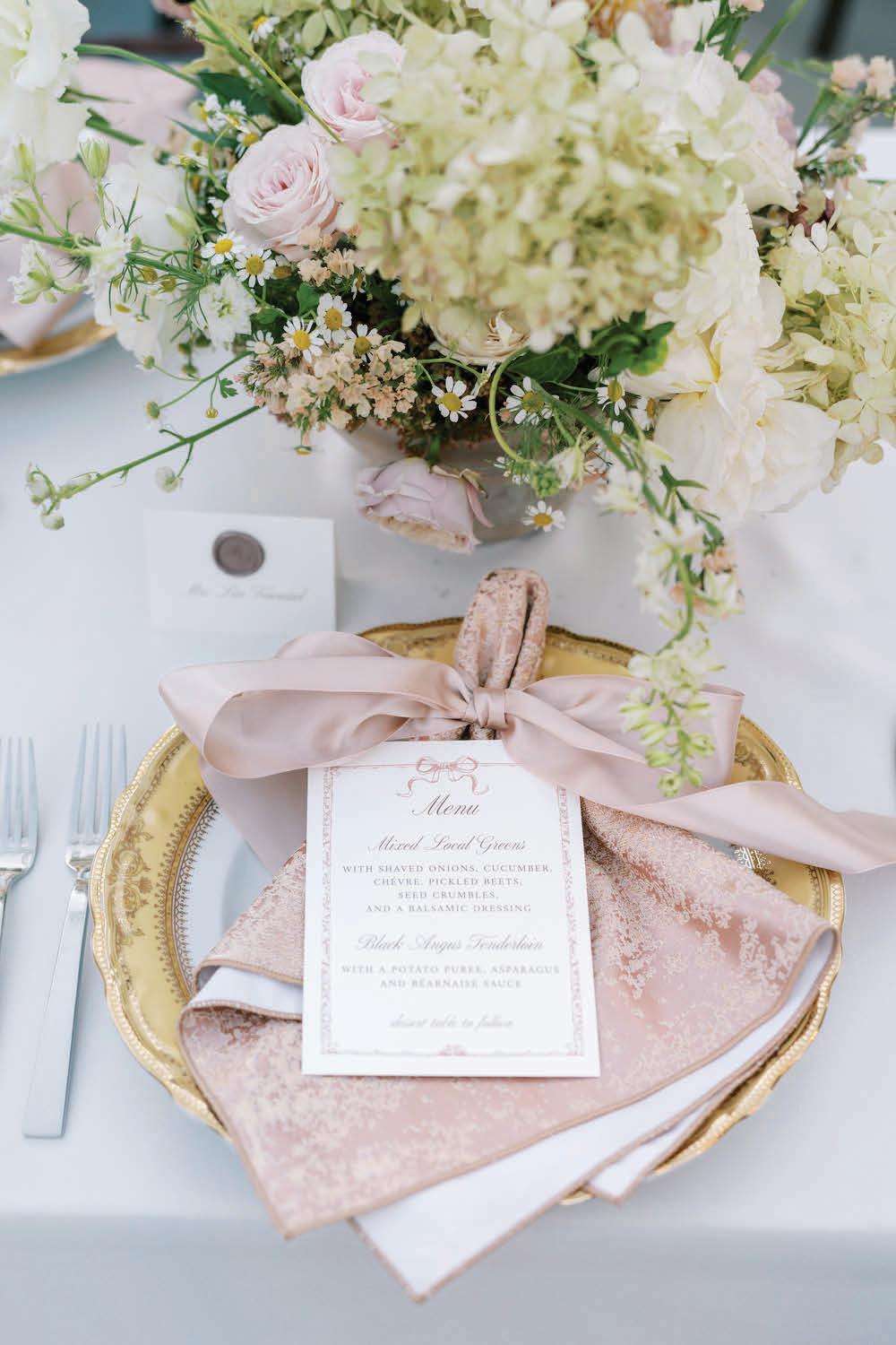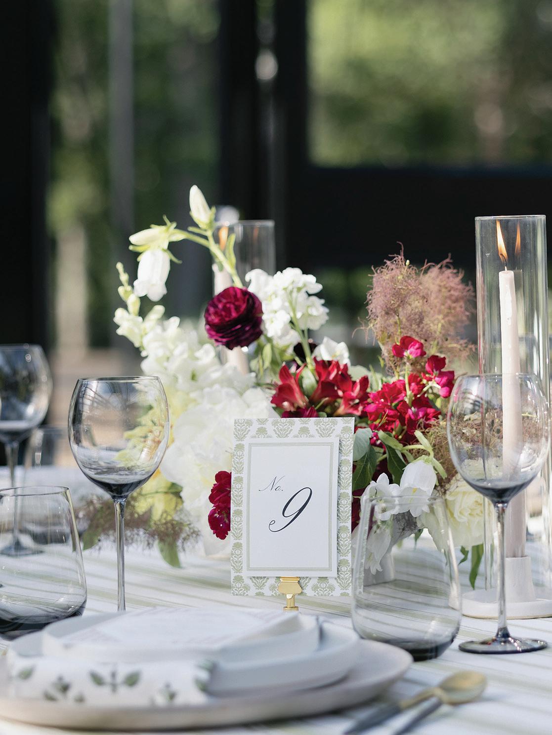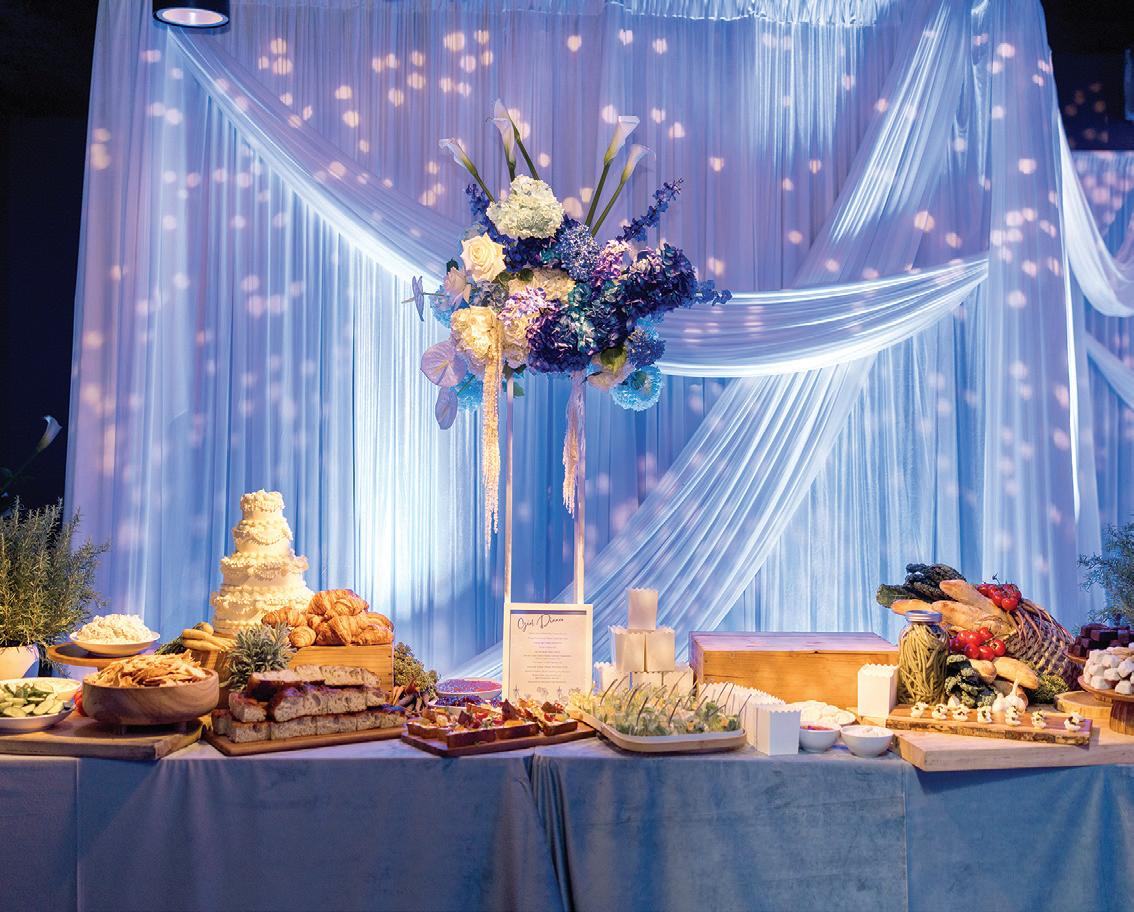 Meredith and Daniel’s wedding was a luminous celebration of love, faith and family, radiating timeless spring elegance. Their story began in college and over seven years, with more than five spent apart, they nurtured their bond through heartfelt letters. These cherished notes became a central theme of the day, inspiring table numbers, a seating chart and a vintage mailbox card box that celebrated their unique journey. Drawing inspiration from the soft beauty of spring, the couple chose a coastal palette of blues, crisp whites and hints of green and silver. The ceremony at Westminster Presbyterian Church reflected the depth of their faith, culminating in a joyful grand exit beneath ringing bells and waving streamers before departing in Daniel’s family’s vintage 1950s Rolls-Royce. The reception at The Beach Club blended romance with waterside sophistication. Whimsical, flowing floral designs in shades of blue, green and neutrals graced the space in clear vases, chinoiserie vessels and silver urns. Layered linens in floral, striped and velvet patterns added texture and visual interest to every table. Guests sipped signature cocktails, toasted with champagne and enjoyed a string quartet during cocktail hour before dancing to a live band under candlelight and shimmering lake views. Every detail, from curated desserts and personalized touches to the soft, ethereal lighting, spoke to the couple’s love story and the legacy of their families. The day was not only a reflection of Meredith and Daniel’s enduring devotion, but a testament to the beauty of love, connection and celebration. — Laura Cross