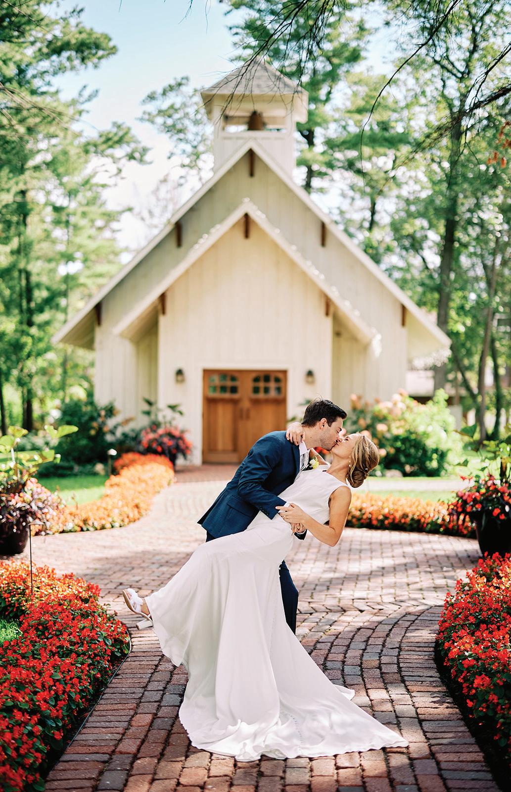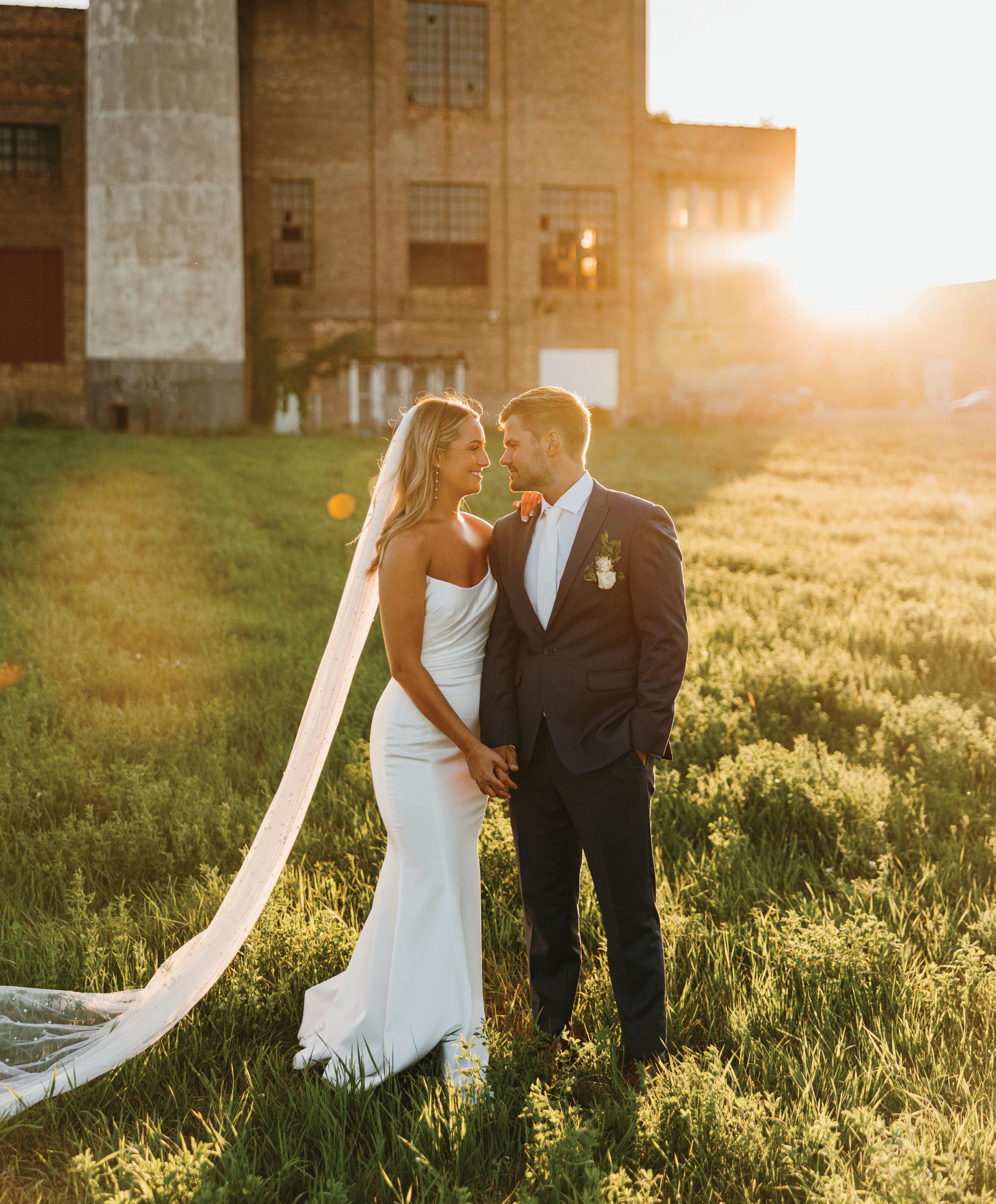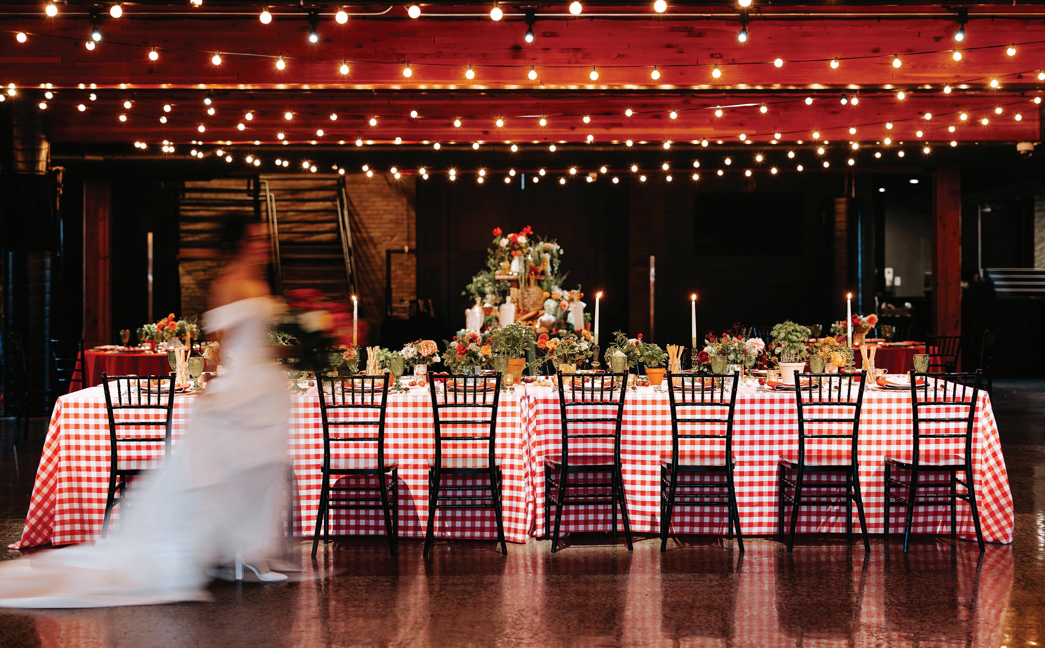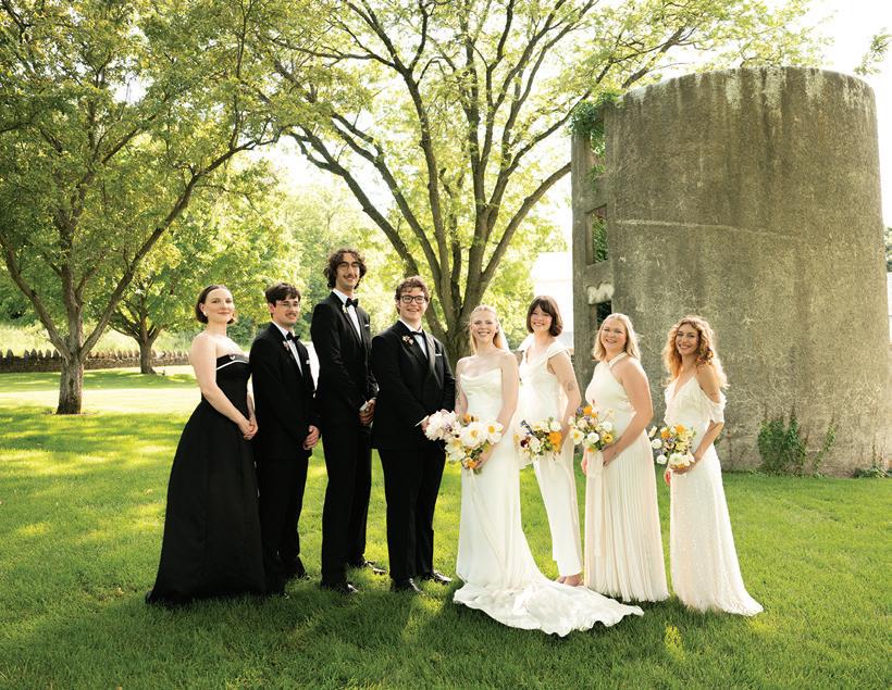 Attending the Fashion Institute of Technology in New York, Addie and Walker found themselves in a precarious situation once the pandemic struck— one that would ultimately lead to the love of a lifetime. With no flights to Minnesota available, Walker invited Addie on a road trip home to Michigan with him, privately telling his parents he wouldn’t leave without her. Upon safely reaching the Midwest, the couple confessed their feelings to each other and never looked back. As self-proclaimed old souls, Addie and Walker wanted a timeless wedding day that also reflected their fun-loving nature and proclivity toward hosting. Seeking a venue as warm and welcoming as themselves, they chose Mayowood Stone Barn, which provided the perfect setting for their sunset-inspired florals and elegant thrifted décor. Addie was a dream in her silk vintage-inspired ensemble, fulfilling her teenage dream of holding a bouquet featuring Clair de Lune peonies as she walked down the aisle. The couple was delightfully unsurprised at the similarity of their hand-written vows, a testament to their deep connection and mutual understanding. After a short and sweet ceremony, the cocktail hour buzzed with conversation among both friends and strangers alike while a curated jazz playlist floated through the air. The party moved indoors for the reception, where tapered candles illuminated long tables. A black-and-white checkered dance floor set the stage for a night of dancing along to their favorite songs, spanning disco, R&B to house music. In their aim for authenticity, Addie and Walker were overwhelmingly successful; every detail from hand-made stamps on their stationery to curated playlists crafted a wedding day that exuded palpable love and care for their guests. — Ryley S. Hoff