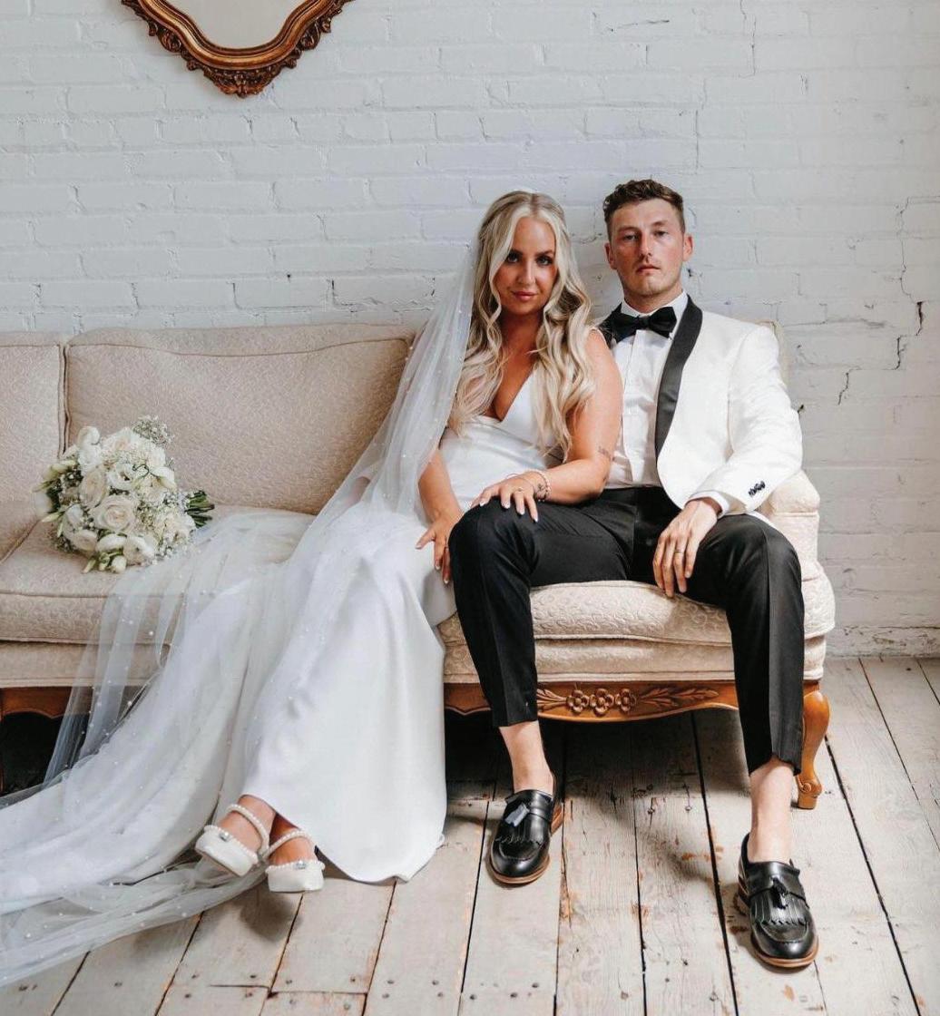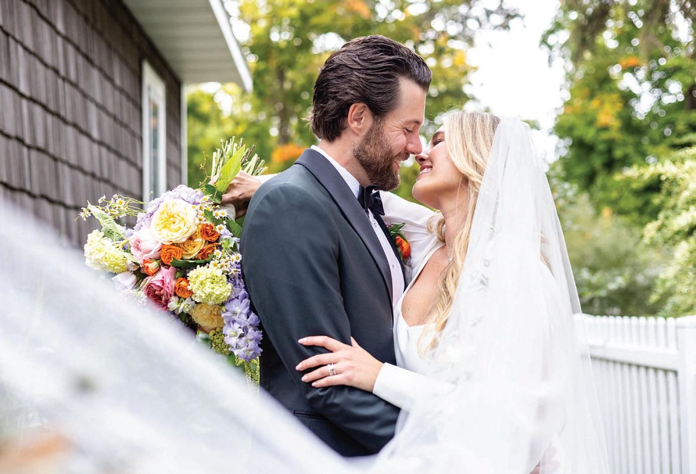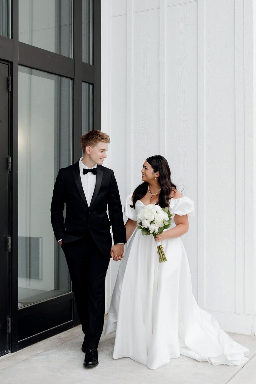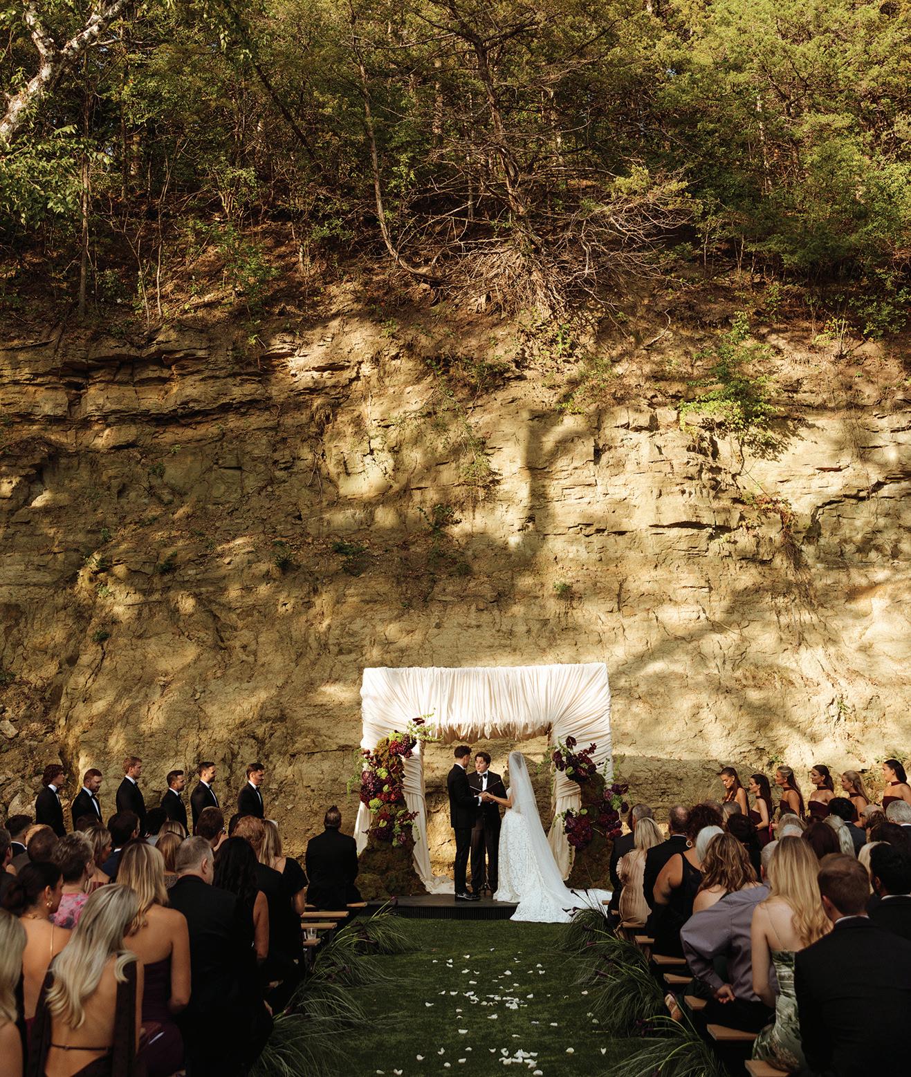 Attending the Fashion Institute of Technology in New York, Addie and Walker found themselves in a precarious situation once the pandemic struck— one that would ultimately lead to the love of a lifetime. With no flights to Minnesota available, Walker invited Addie on a road trip home to Michigan with him, privately telling his parents he wouldn’t leave without her. Upon safely reaching the Midwest, the couple confessed their feelings to each other and never looked back. As self-proclaimed old souls, Addie and Walker wanted a timeless wedding day that also reflected their fun-loving nature and proclivity toward hosting. Seeking a venue as warm and welcoming as themselves, they chose Mayowood Stone Barn, which provided the perfect setting for their sunset-inspired florals and elegant thrifted décor. Addie was a dream in her silk vintage-inspired ensemble, fulfilling her teenage dream of holding a bouquet featuring Clair de Lune peonies as she walked down the aisle. The couple was delightfully unsurprised at the similarity of their hand-written vows, a testament to their deep connection and mutual understanding. After a short and sweet ceremony, the cocktail hour buzzed with conversation among both friends and strangers alike while a curated jazz playlist floated through the air. The party moved indoors for the reception, where tapered candles illuminated long tables. A black-and-white checkered dance floor set the stage for a night of dancing along to their favorite songs, spanning disco, R&B to house music. In their aim for authenticity, Addie and Walker were overwhelmingly successful; every detail from hand-made stamps on their stationery to curated playlists crafted a wedding day that exuded palpable love and care for their guests. — Ryley S. Hoff