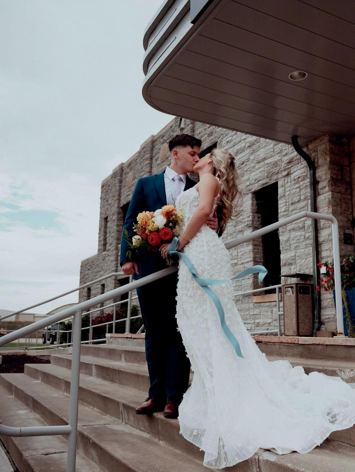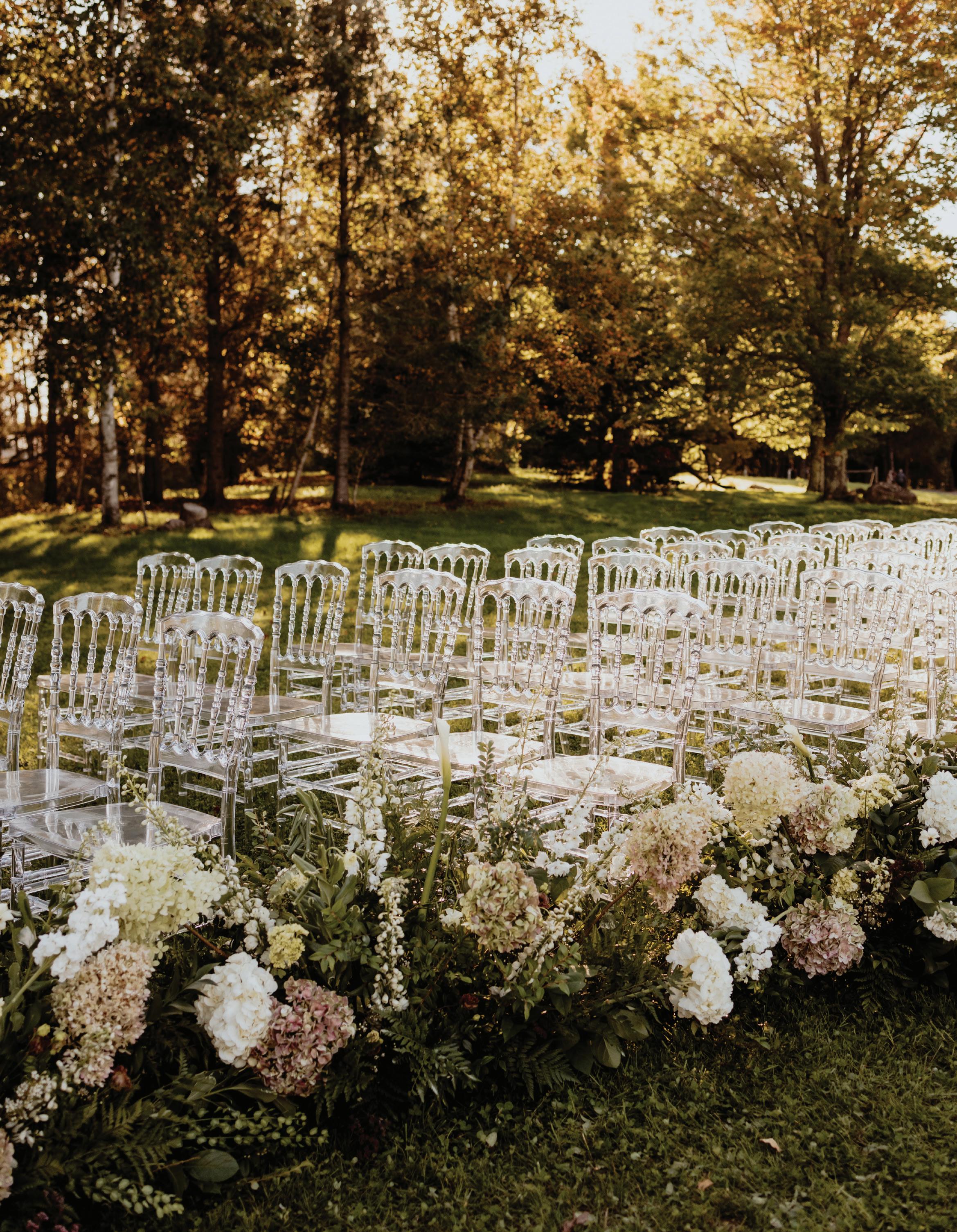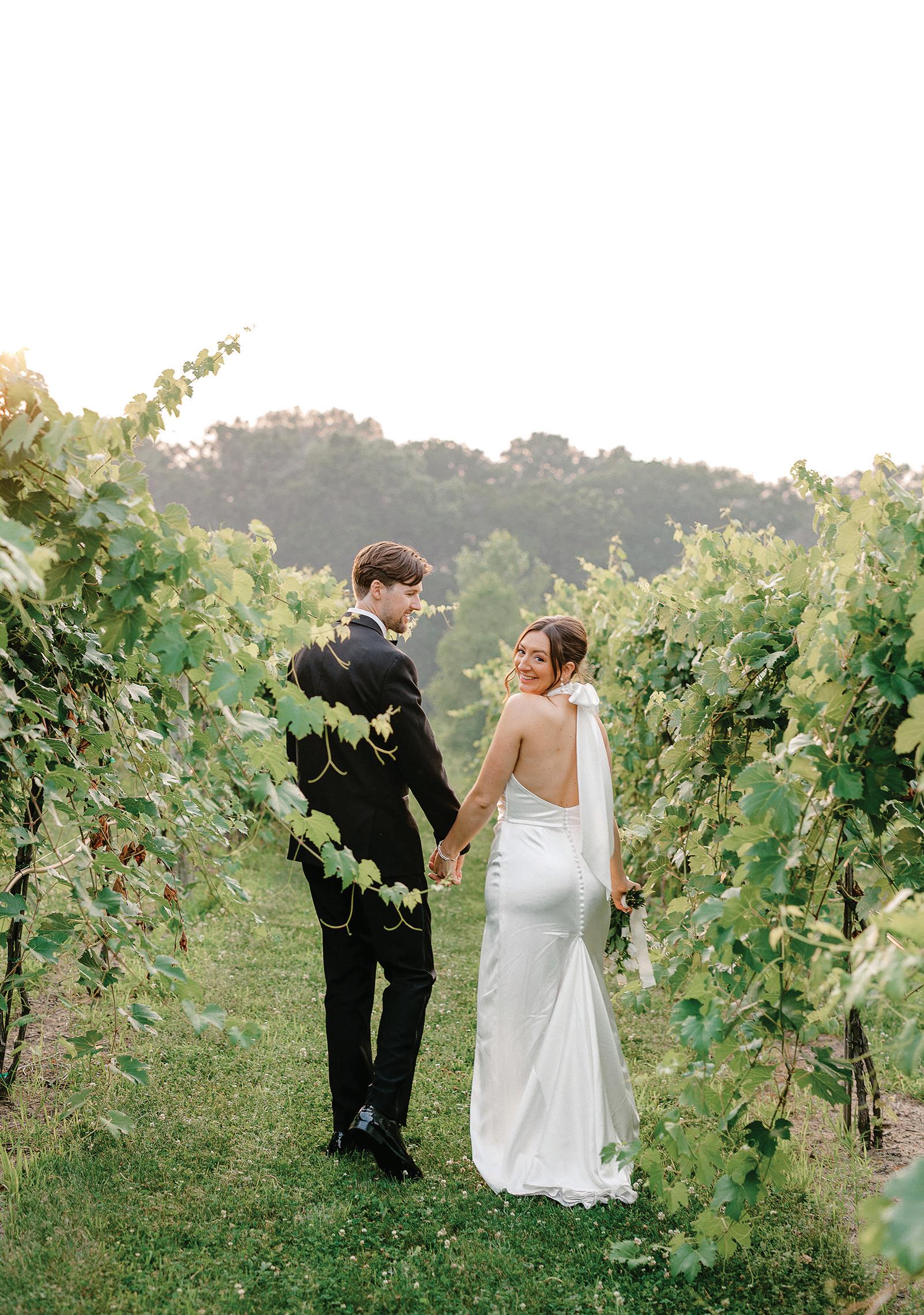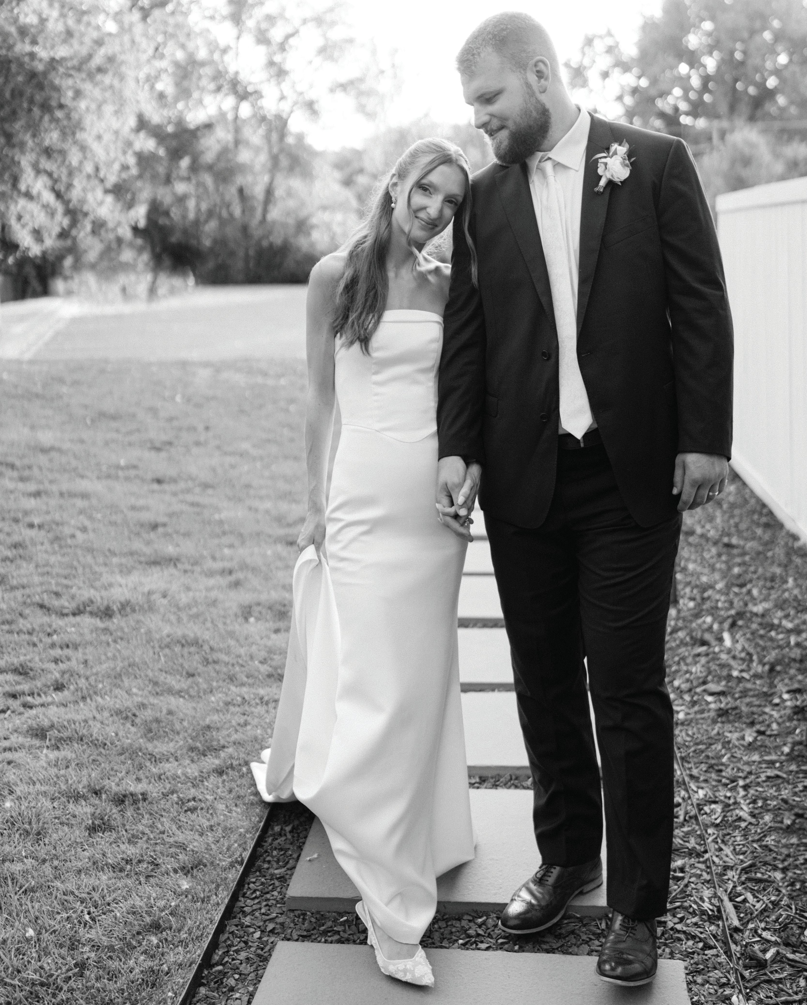 Attending the Fashion Institute of Technology in New York, Addie and Walker found themselves in a precarious situation once the pandemic struck— one that would ultimately lead to the love of a lifetime. With no flights to Minnesota available, Walker invited Addie on a road trip home to Michigan with him, privately telling his parents he wouldn’t leave without her. Upon safely reaching the Midwest, the couple confessed their feelings to each other and never looked back. As self-proclaimed old souls, Addie and Walker wanted a timeless wedding day that also reflected their fun-loving nature and proclivity toward hosting. Seeking a venue as warm and welcoming as themselves, they chose Mayowood Stone Barn, which provided the perfect setting for their sunset-inspired florals and elegant thrifted décor. Addie was a dream in her silk vintage-inspired ensemble, fulfilling her teenage dream of holding a bouquet featuring Clair de Lune peonies as she walked down the aisle. The couple was delightfully unsurprised at the similarity of their hand-written vows, a testament to their deep connection and mutual understanding. After a short and sweet ceremony, the cocktail hour buzzed with conversation among both friends and strangers alike while a curated jazz playlist floated through the air. The party moved indoors for the reception, where tapered candles illuminated long tables. A black-and-white checkered dance floor set the stage for a night of dancing along to their favorite songs, spanning disco, R&B to house music. In their aim for authenticity, Addie and Walker were overwhelmingly successful; every detail from hand-made stamps on their stationery to curated playlists crafted a wedding day that exuded palpable love and care for their guests. — Ryley S. Hoff