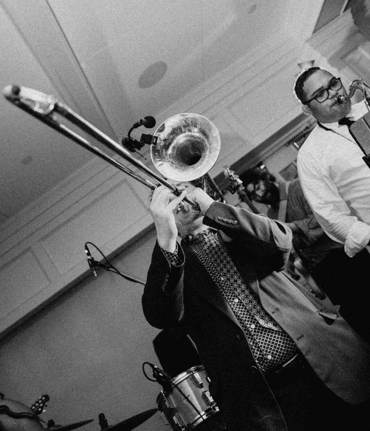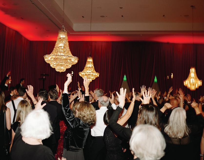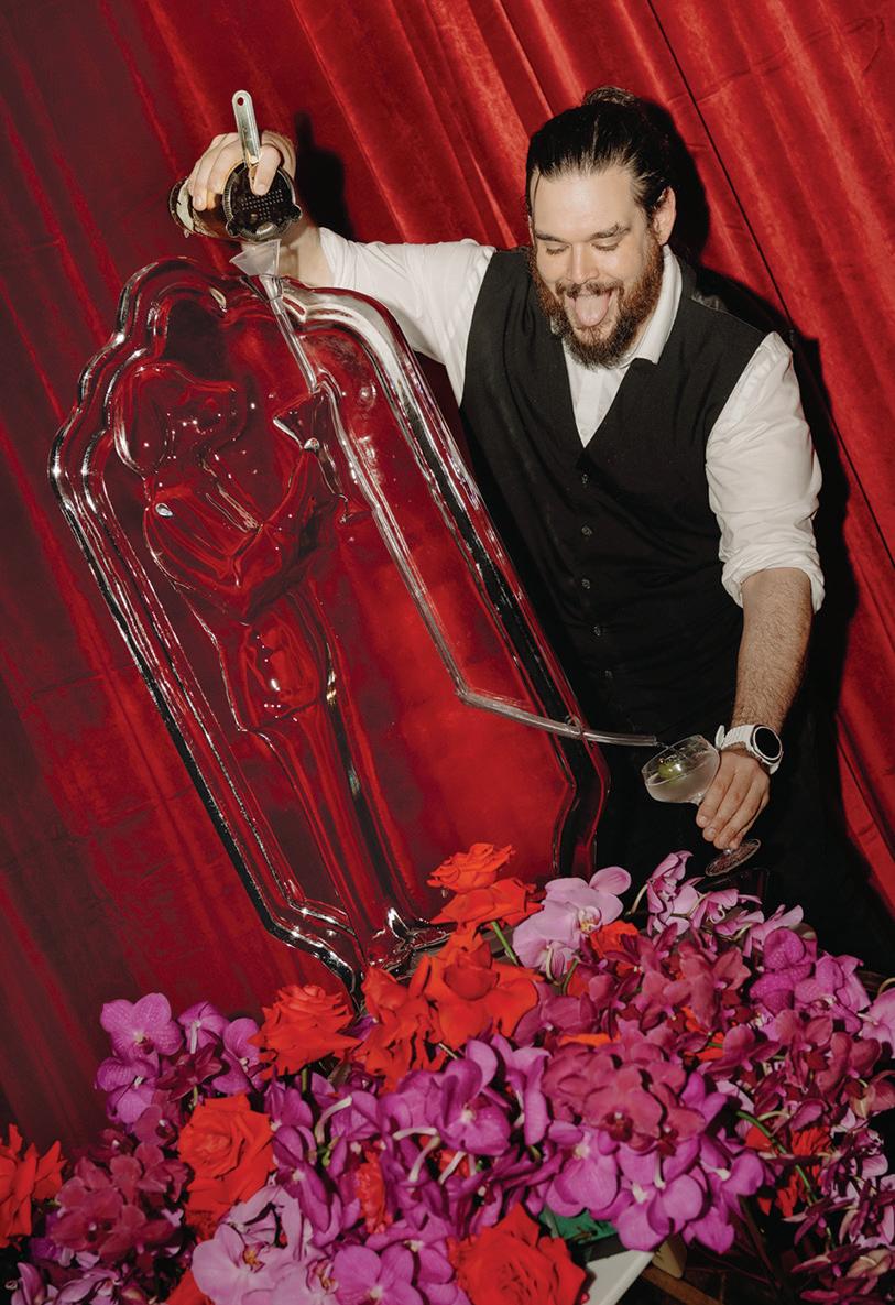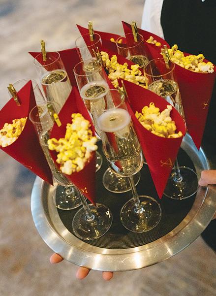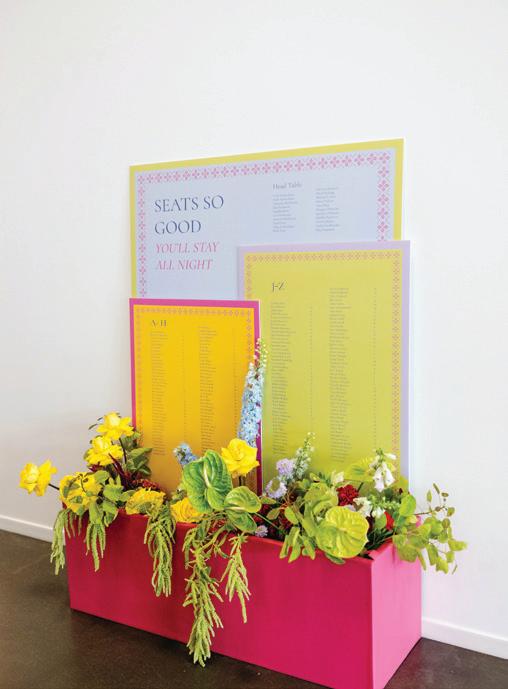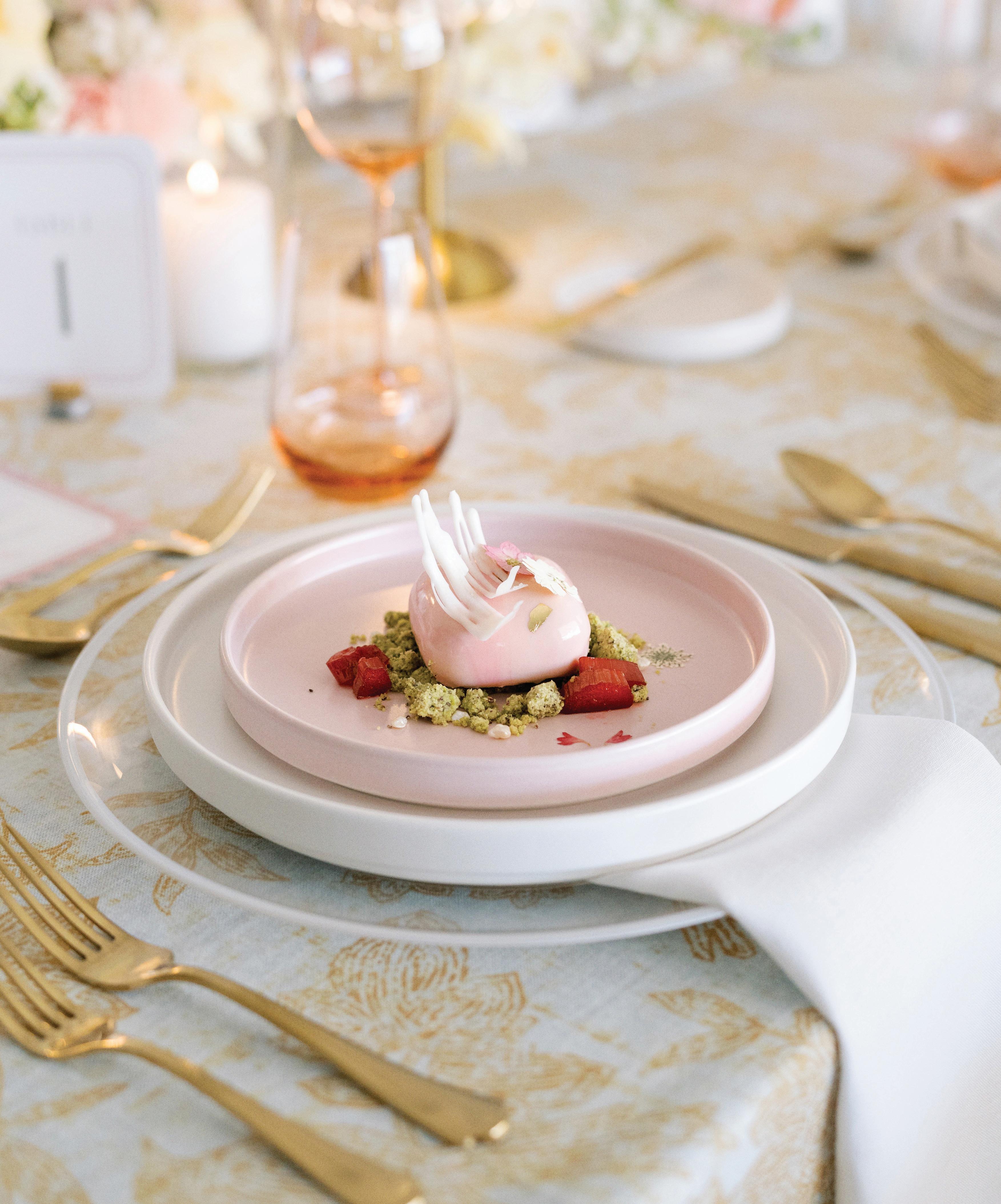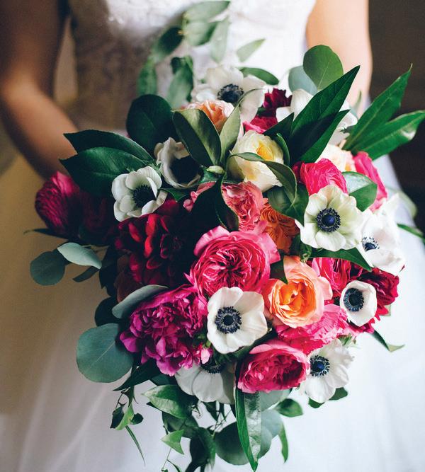 On the 50th anniversary of his parents’ wedding, Trip married the love of his life, Natalie, at St. Paul College Club. The two met in law school seven years ago, and despite the serious nature of their profession, they wanted their wedding day to be laid-back, reflecting their go-with-the-flow personalities. Drawing inspiration from the venue’s colorful pops of pink and blue décor, the aesthetic for Natalie and Trip’s day was described as “classic vintage with a kitschy twist.” Pink bows along the main staircase set the tone for a playful affair. The indoor ceremony space served as a versatile blank slate. Romantic layers of pink silk fabric were fashioned into a retro backdrop. Opting to balance the cheeky pops of color, white hydrangeas, calla lilies and lush foliage in artistic sculptural arrangements to create a unique altar. With a touch of drama, Natalie glided down the aisle with a bouquet of elegant stems tied with a black bow. Her strapless gown was simple yet striking, accented with a full veil and the lengthy train of her mother’s wedding dress. Trip’s ensemble was equally intentional; his classic tuxedo accented with custom “I Do” shoes from Stubbs and Wootton and a custom cummerbund adorned with a playing card motif. The evening amplified the undeniable thread of fun woven throughout the wedding day. Laughter floated through the air as Natalie and Trip shared a meal with their loved ones before dancing the night away dressed in pink feather boas and sunglasses. — Ryley S. Hoff