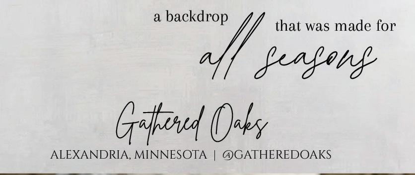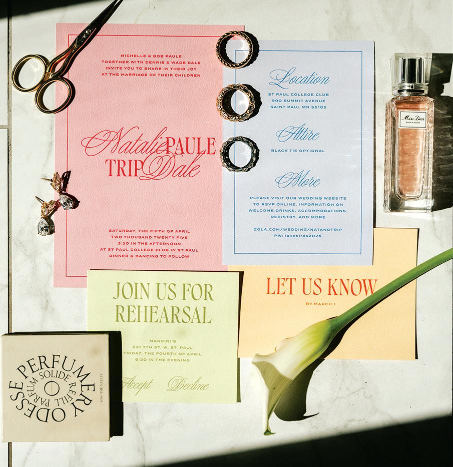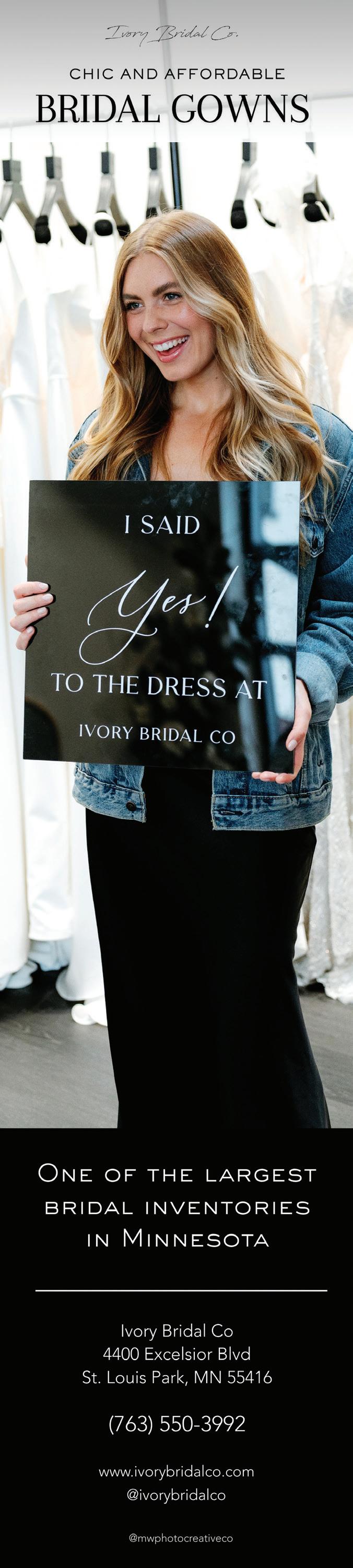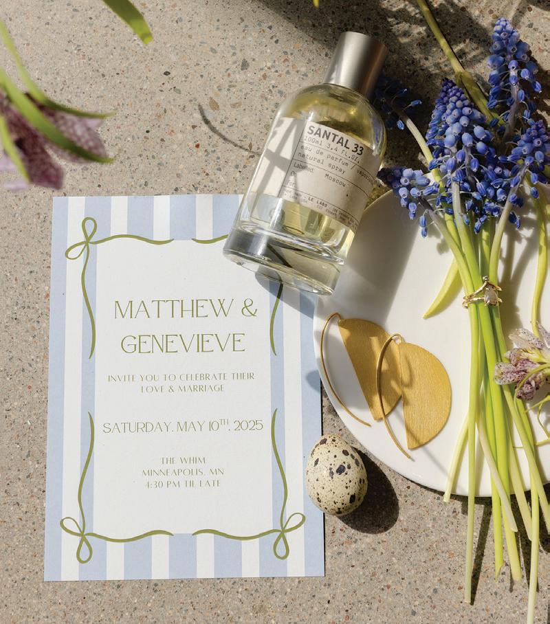 Iron Diamond Media, P.O. Box 5, Rice, MN 56367 Minnesota Bride | Spring/Summer 2026 Published semi-annually by Iron Diamond Media ©2026 Iron Diamond Media | All rights reserved For customer service inquiries, please contact: hello@irondiamondmedia.com