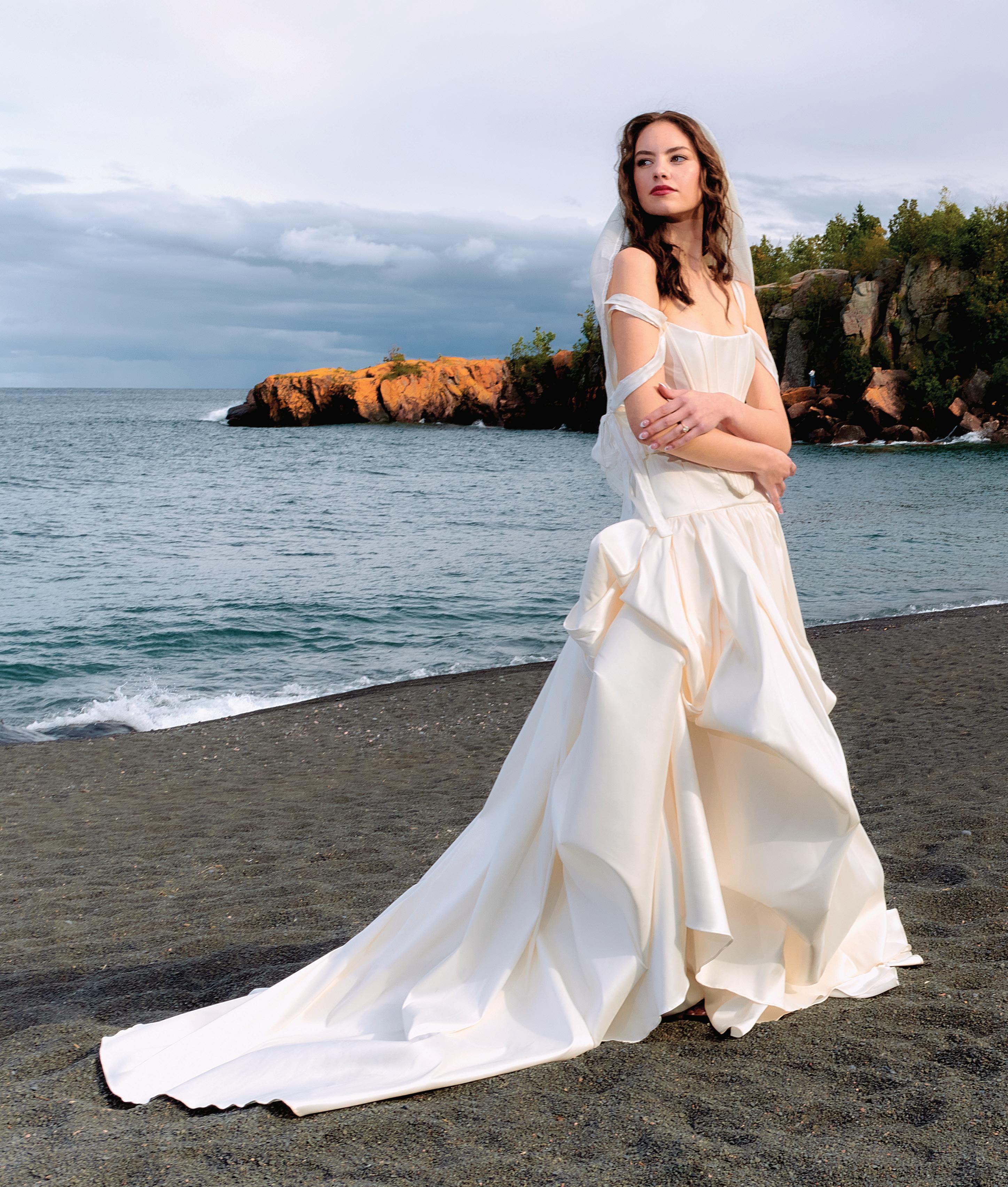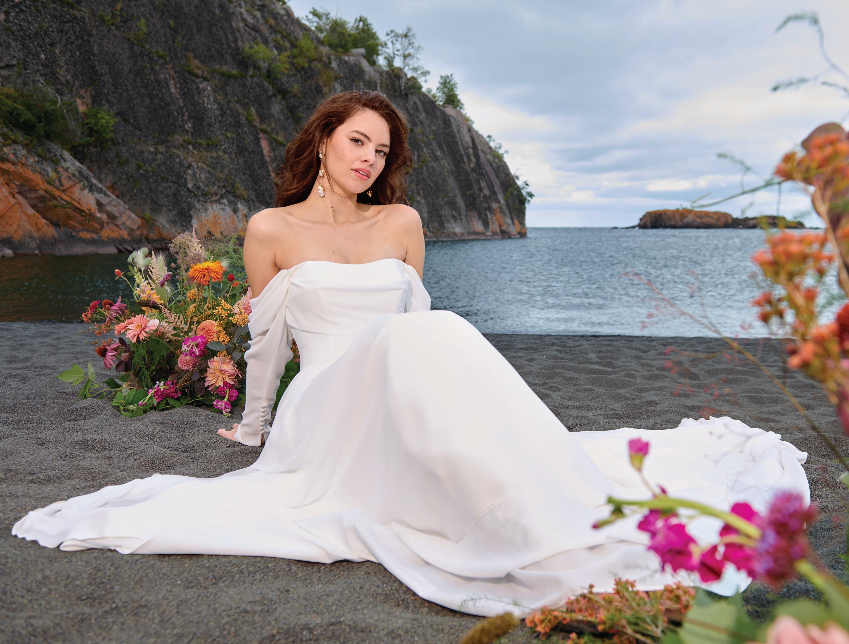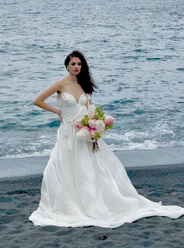 A series of bridal looks evoke sophistication on the shores of Black Beach.