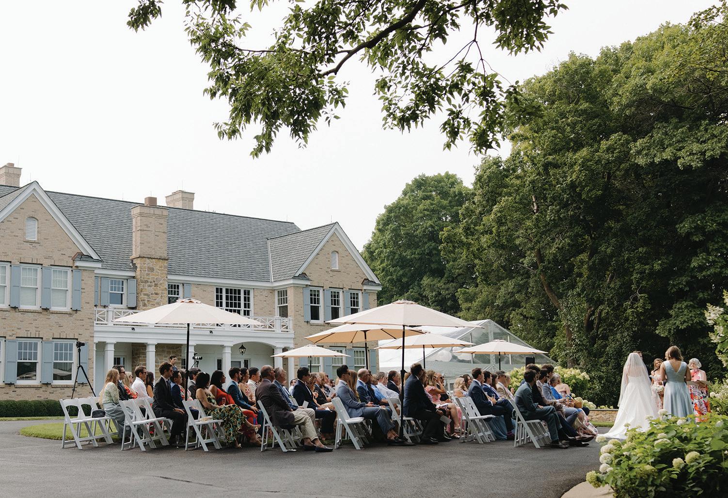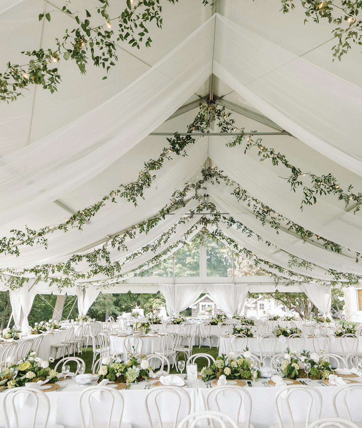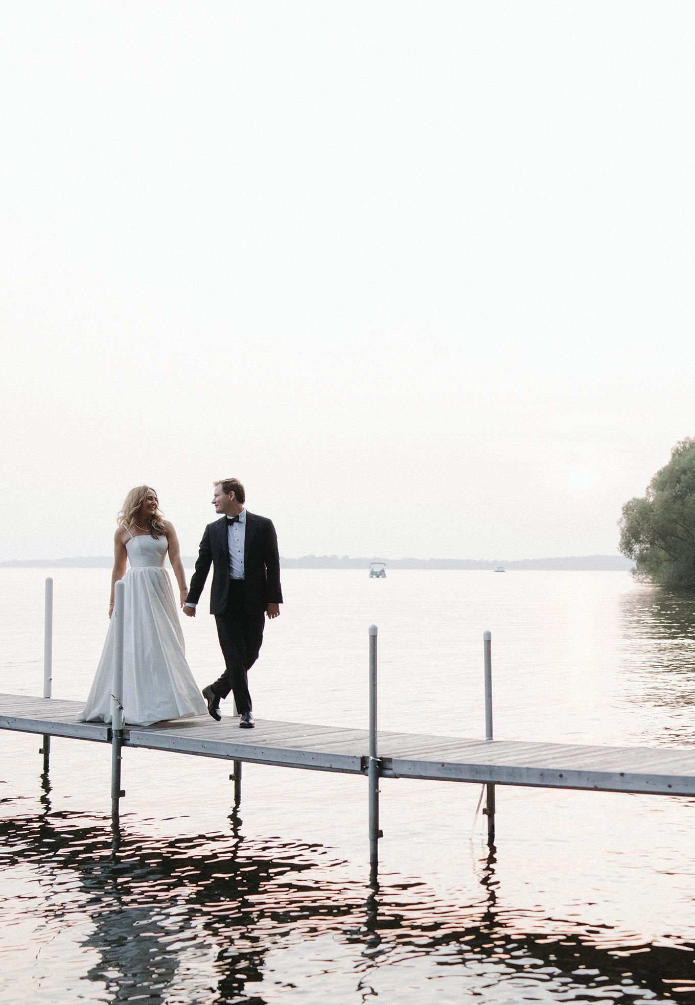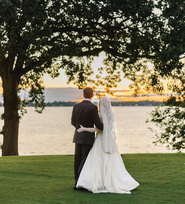 Anna and Grant’s wedding at Anna’s childhood home on Lake Minnewashta was a reflection of love, legacy and the beauty of coming home. Exchanging vows in the place where so many of Anna’s favorite memories were made felt both natural and deeply symbolic, a return to the roots as she began a new chapter with Grant. The couple envisioned a day that felt timeless yet personal, full of thoughtful details that spoke to who they are and what mattered most. Guests were welcomed with champagne upon arrival, setting a tone of celebration and warmth. The lakeside ceremony was officiated by Anna’s childhood pastor and included heartfelt readings from family and dear friends. The space was surrounded by lush, romantic florals anchored in white roses with accents of peonies, lisianthus, hydrangeas, delicate touches of stock, Queen Anne’s lace and greenery. Following the ceremony, a lakeside cocktail hour offered freshly shucked oysters, while a nearby cigar and whiskey bar encouraged guests to linger and connect. Dinner unfolded beneath a billowing white tent draped in soft fabric and lit by crystal chandeliers. Long tables dressed in floral-patterned linens, candlelight and monochromatic blooms created a setting that felt classic and effortlessly elegant. Guests enjoyed a four-course meal before indulging in a shortcake and sweet biscuit bar. The couple’s cake, made by two of Anna’s closest friends, was surrounded by framed wedding photos from generations past, a tender nod to the family and love that brought them to this moment. — Laura Cross