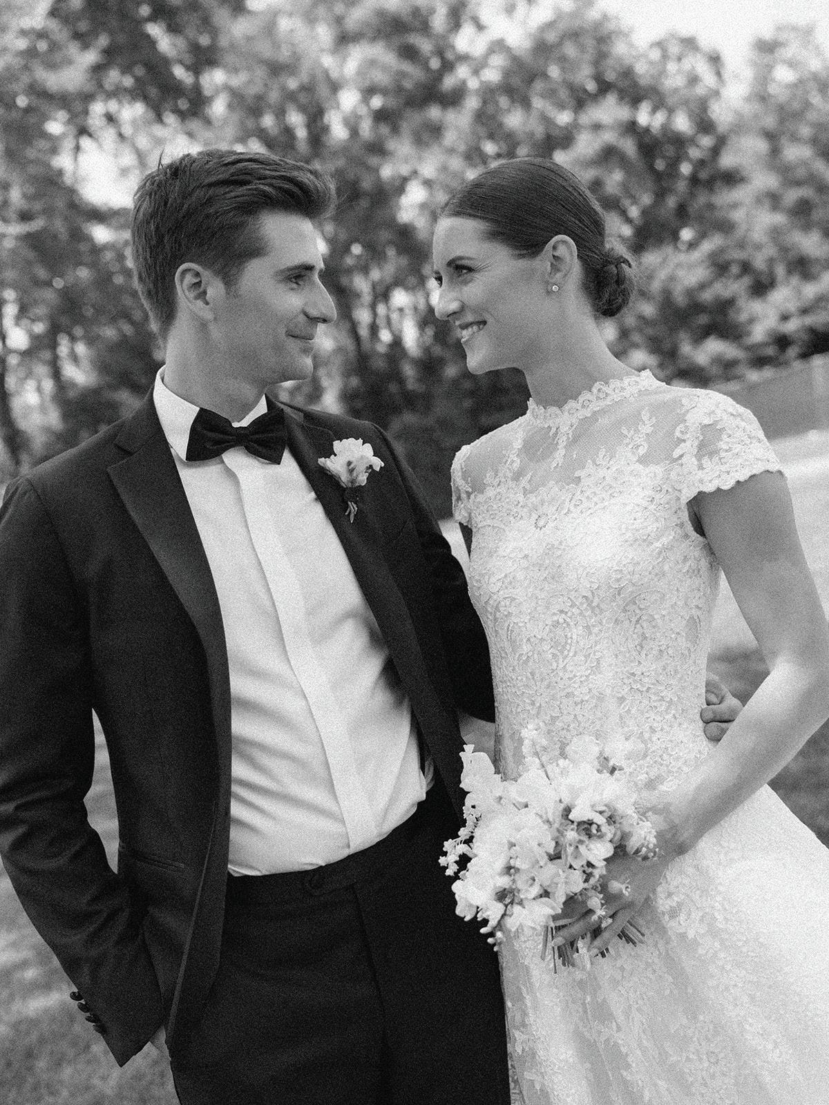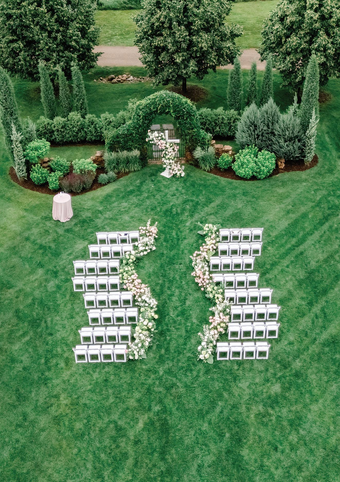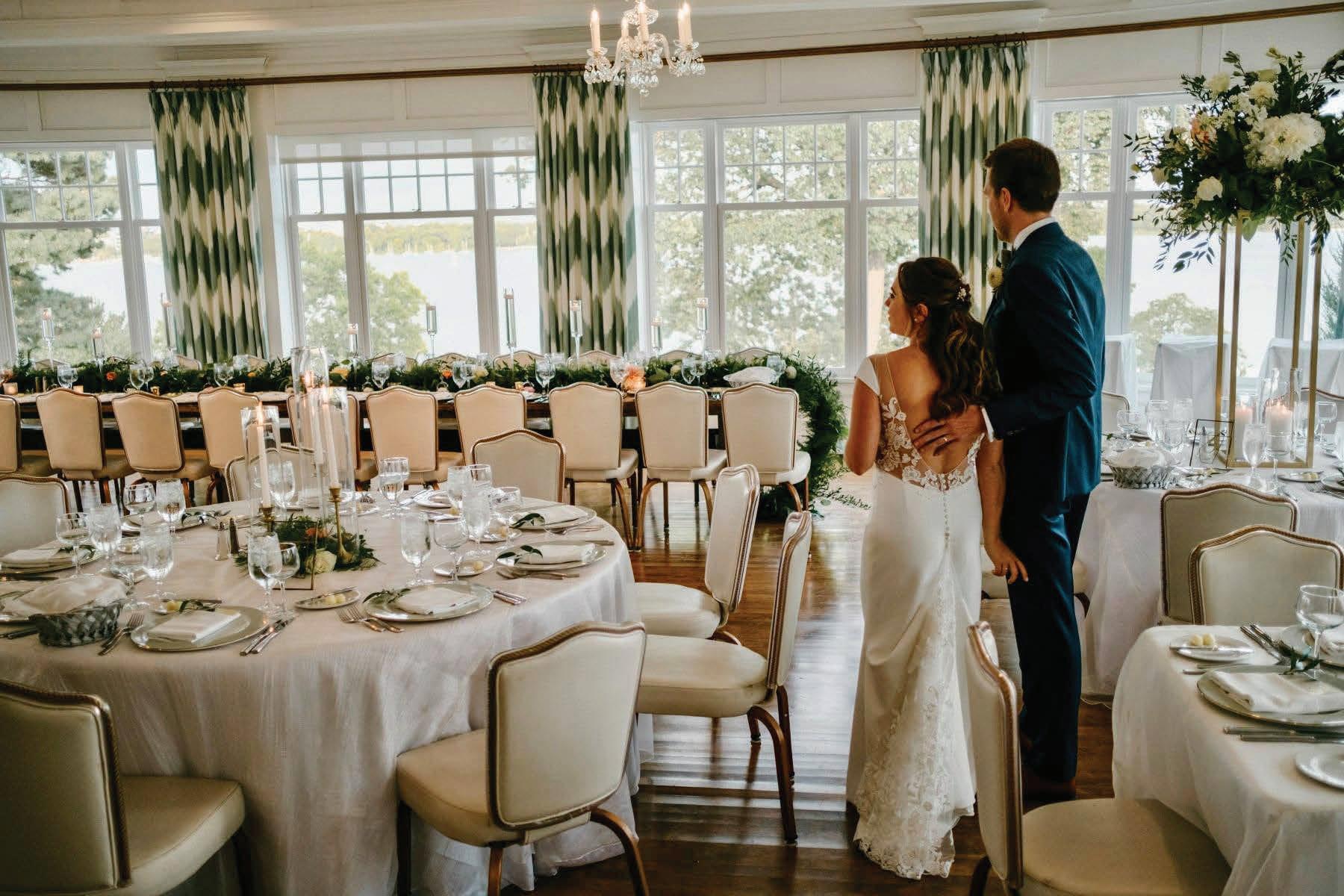 Anna and Grant’s wedding at Anna’s childhood home on Lake Minnewashta was a reflection of love, legacy and the beauty of coming home. Exchanging vows in the place where so many of Anna’s favorite memories were made felt both natural and deeply symbolic, a return to the roots as she began a new chapter with Grant. The couple envisioned a day that felt timeless yet personal, full of thoughtful details that spoke to who they are and what mattered most. Guests were welcomed with champagne upon arrival, setting a tone of celebration and warmth. The lakeside ceremony was officiated by Anna’s childhood pastor and included heartfelt readings from family and dear friends. The space was surrounded by lush, romantic florals anchored in white roses with accents of peonies, lisianthus, hydrangeas, delicate touches of stock, Queen Anne’s lace and greenery. Following the ceremony, a lakeside cocktail hour offered freshly shucked oysters, while a nearby cigar and whiskey bar encouraged guests to linger and connect. Dinner unfolded beneath a billowing white tent draped in soft fabric and lit by crystal chandeliers. Long tables dressed in floral-patterned linens, candlelight and monochromatic blooms created a setting that felt classic and effortlessly elegant. Guests enjoyed a four-course meal before indulging in a shortcake and sweet biscuit bar. The couple’s cake, made by two of Anna’s closest friends, was surrounded by framed wedding photos from generations past, a tender nod to the family and love that brought them to this moment. — Laura Cross