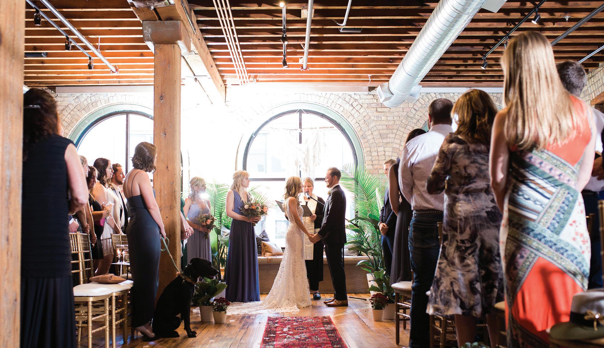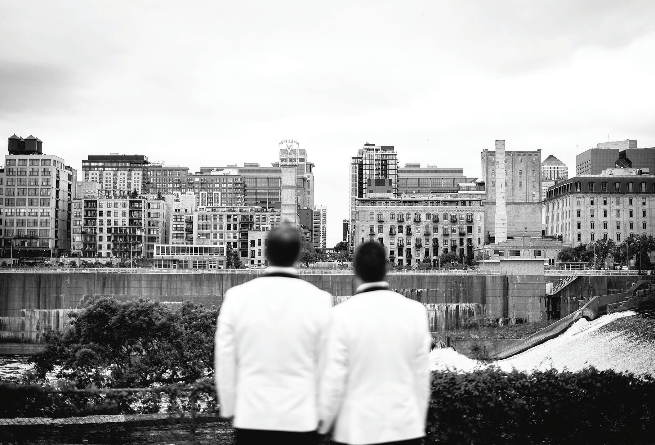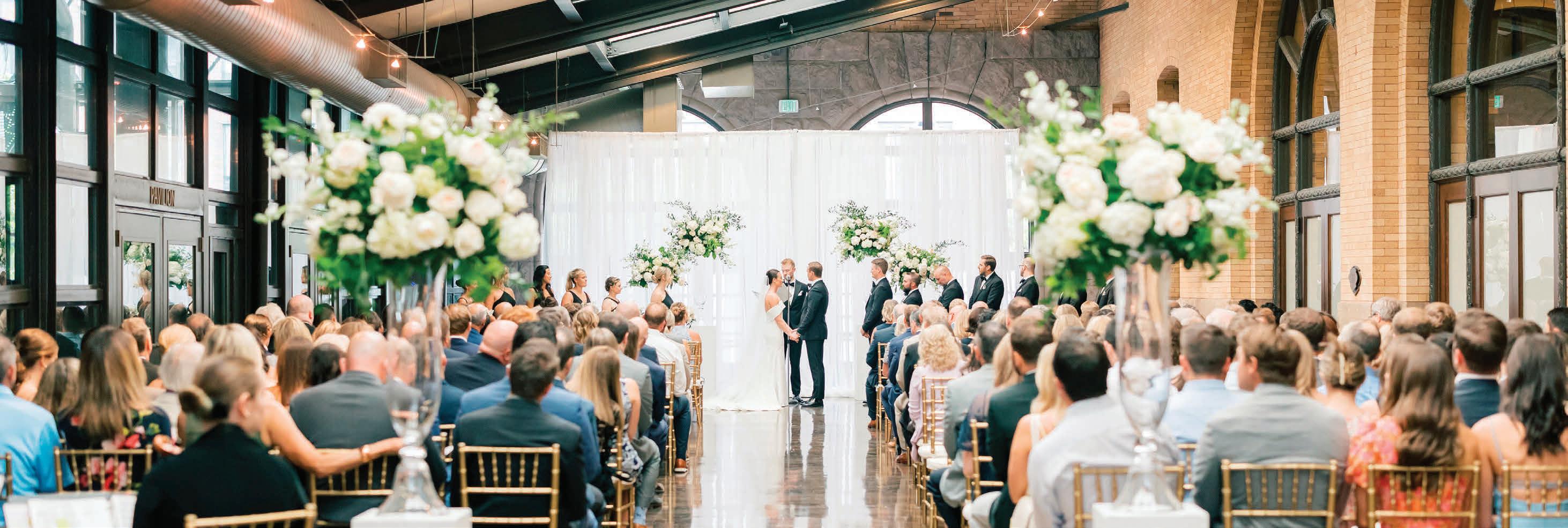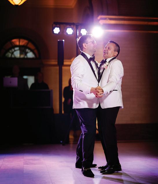 Matt and Luke’s wedding day was designed with flow in mind—the grooms were determined to foster connectivity and inclusivity throughout their nuptials. Their morning began quietly with a private exchange of vows, ensuring they’d start their wedding as they would end it—just the two of them. Soon after, Matt and Luke boarded a shuttle with their wedding party to explore Minneapolis, stopping for photos at Stone Arch Bridge, Gold Medal Park and Father Hennepin Bluff Park. At The Depot, the industrial-yet-vintage space was the perfect backdrop for the heartfelt ceremony, reflective of the couple’s values and family ties. Each groom was escorted down the aisle by his parents, and loved ones shared readings chosen specifically for the occasion. The vows included a unity moment, similar to a unity candle, representing their lasting bond and commitment. Afterward, they gathered with their parents and wedding party for a brief, private toast—a moment to exhale before the celebration continued into the evening. The reception glowed with candlelight and soft greenery running the length of tables. Guests sipped signature cocktails—Ely Elixir and Cottonwood Concoction—while framed photos of family wedding days warmed the room and connected love stories from the past and present. Dinner led to dancing, beginning with the couple’s first dance, followed by the sweet mothers-sons dance and culminating in a lively number with their wedding party that had everyone cheering. — Megan Simpson Teeter
