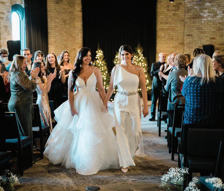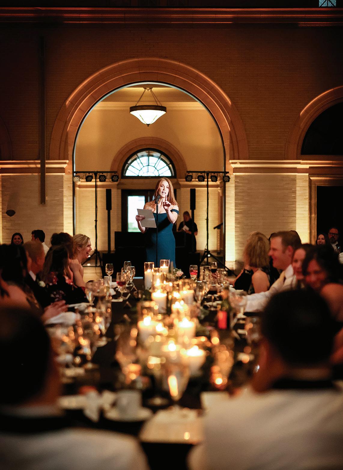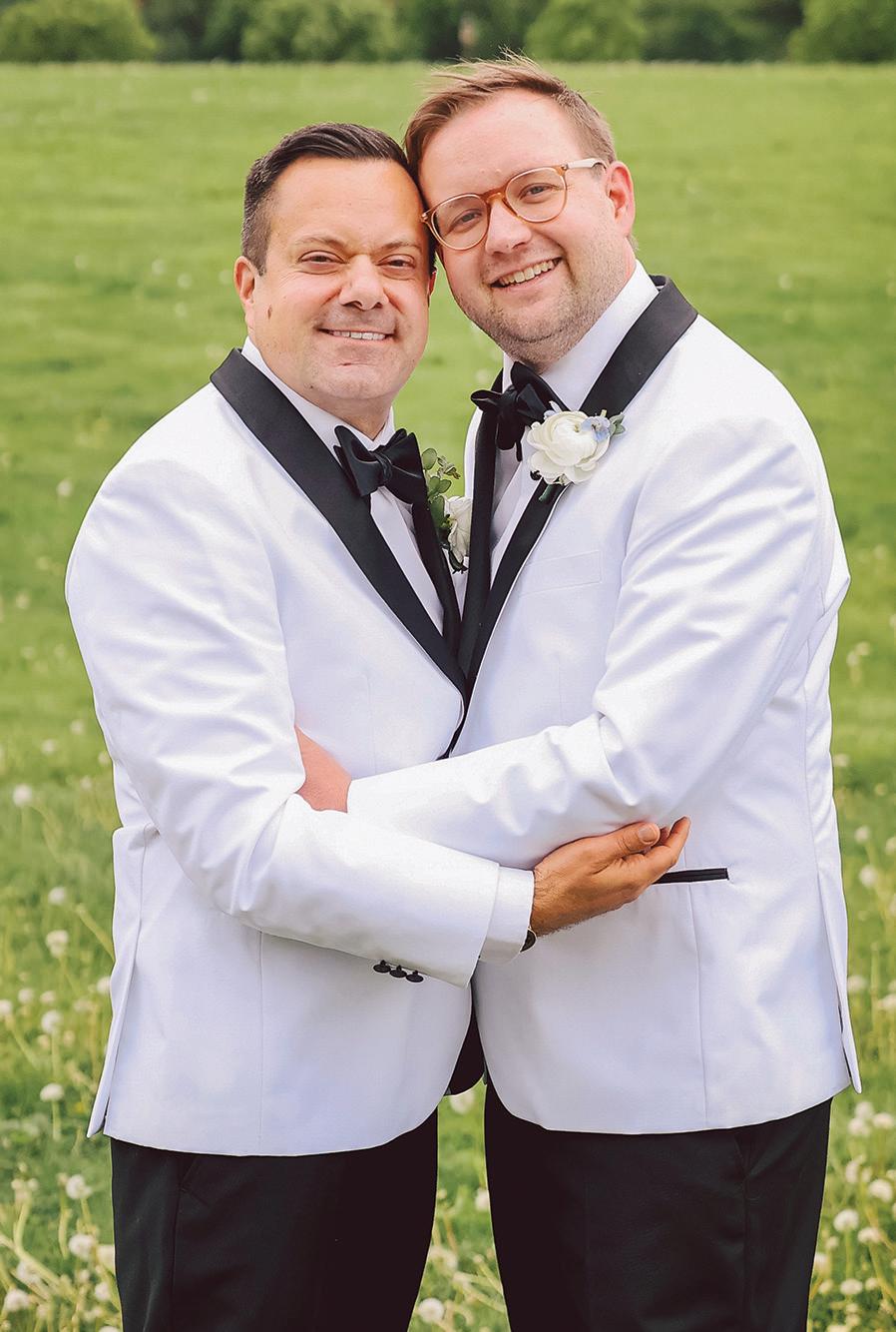 Matt and Luke’s wedding day was designed with flow in mind—the grooms were determined to foster connectivity and inclusivity throughout their nuptials. Their morning began quietly with a private exchange of vows, ensuring they’d start their wedding as they would end it—just the two of them. Soon after, Matt and Luke boarded a shuttle with their wedding party to explore Minneapolis, stopping for photos at Stone Arch Bridge, Gold Medal Park and Father Hennepin Bluff Park. At The Depot, the industrial-yet-vintage space was the perfect backdrop for the heartfelt ceremony, reflective of the couple’s values and family ties. Each groom was escorted down the aisle by his parents, and loved ones shared readings chosen specifically for the occasion. The vows included a unity moment, similar to a unity candle, representing their lasting bond and commitment. Afterward, they gathered with their parents and wedding party for a brief, private toast—a moment to exhale before the celebration continued into the evening. The reception glowed with candlelight and soft greenery running the length of tables. Guests sipped signature cocktails—Ely Elixir and Cottonwood Concoction—while framed photos of family wedding days warmed the room and connected love stories from the past and present. Dinner led to dancing, beginning with the couple’s first dance, followed by the sweet mothers-sons dance and culminating in a lively number with their wedding party that had everyone cheering. — Megan Simpson Teeter