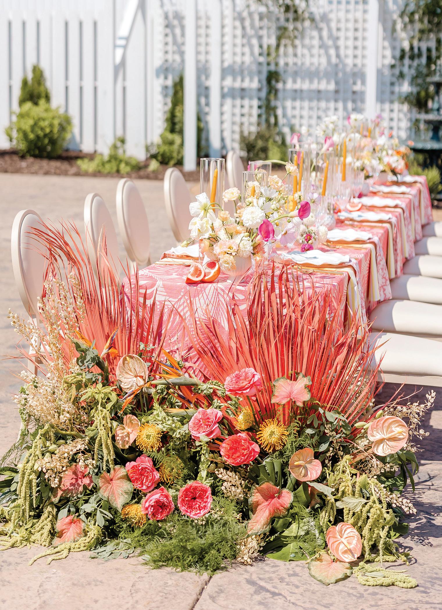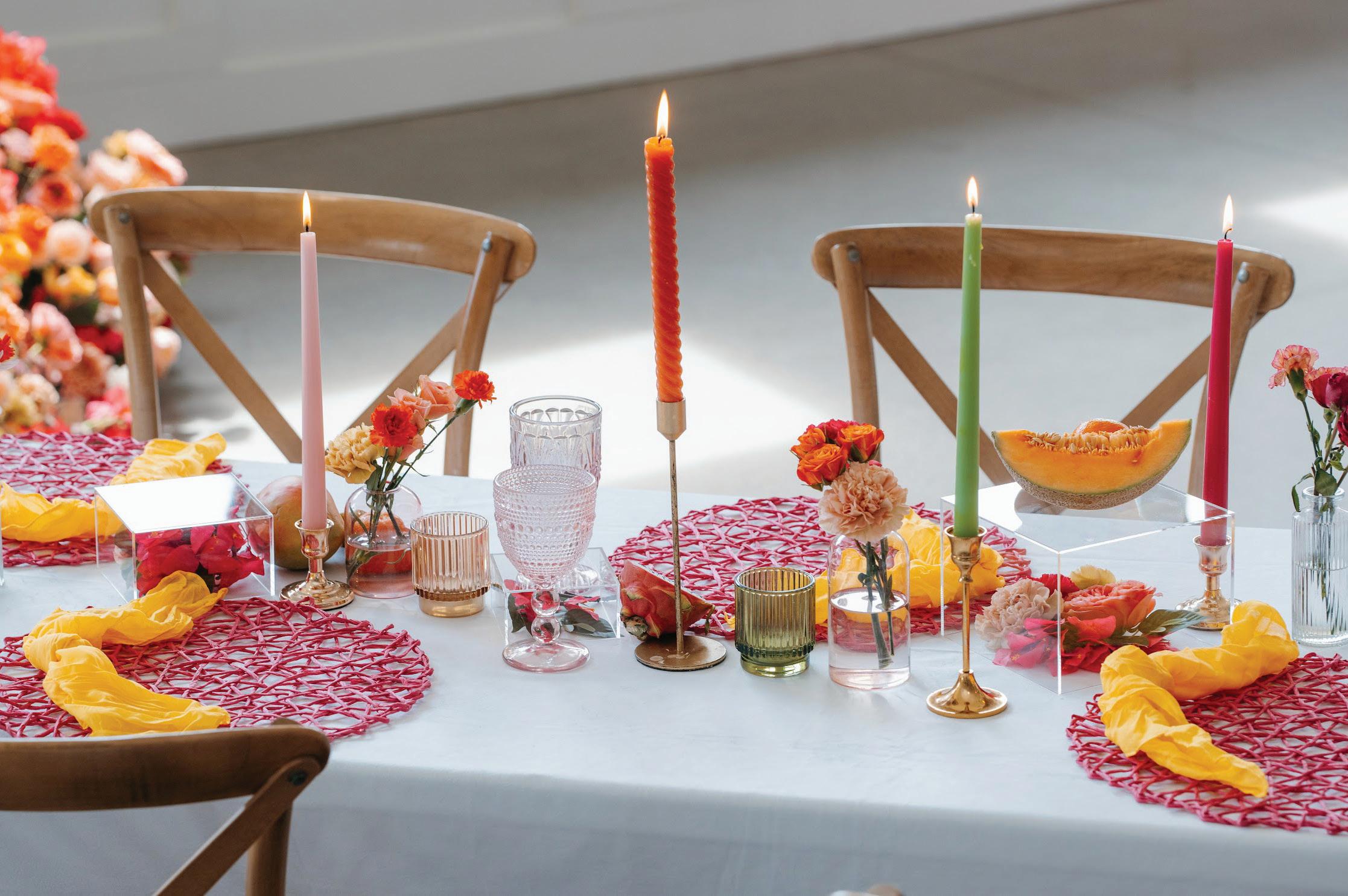 From a monochromatic red fête to a vibrant fruit-forward wedding theme, these colorful designs are sure to inspire.