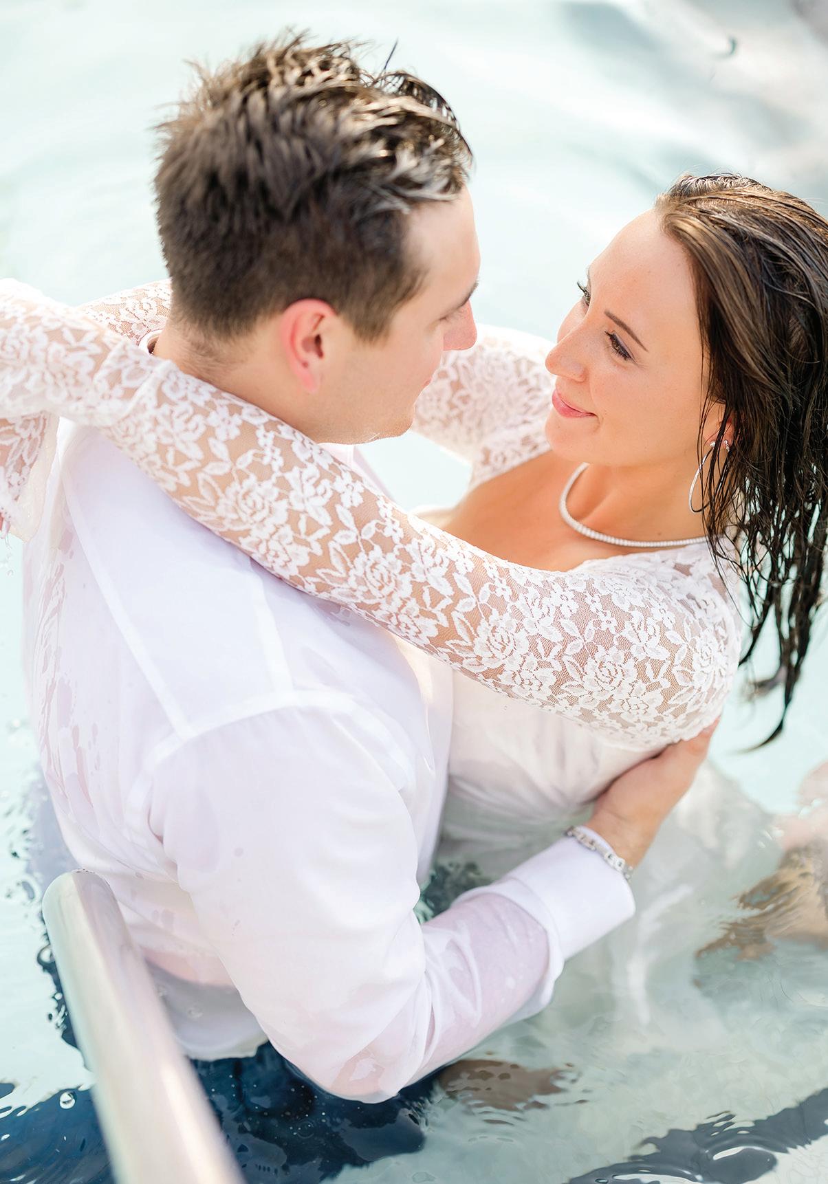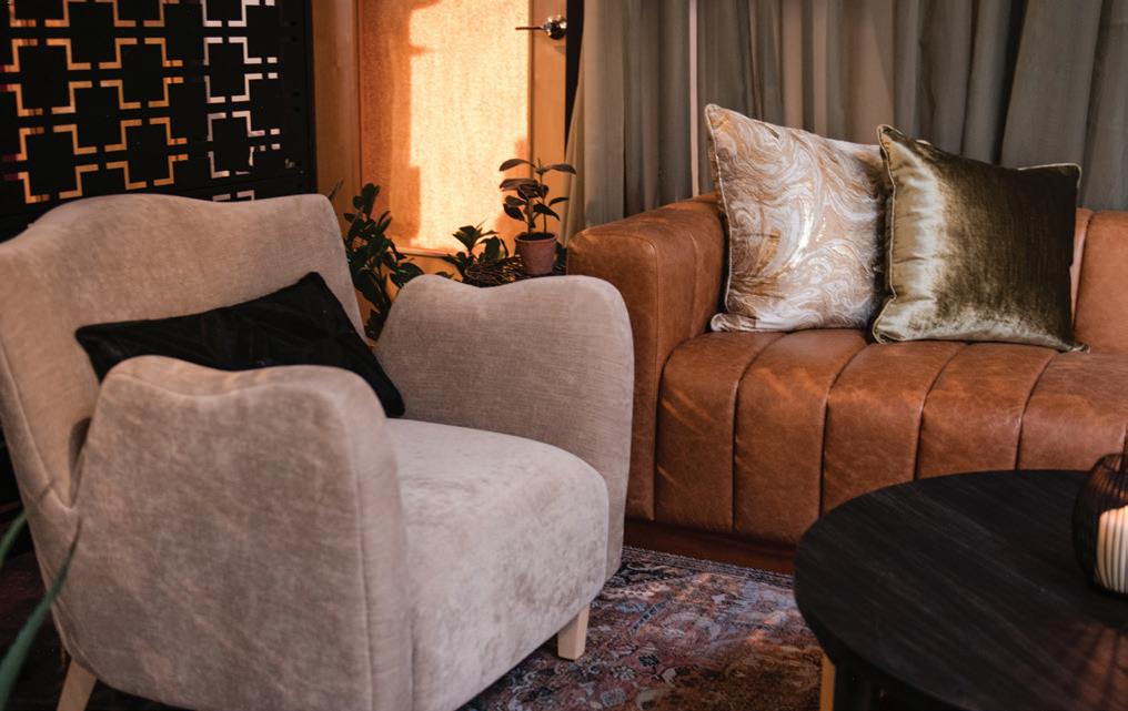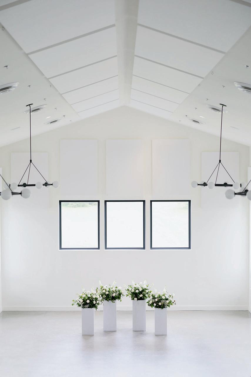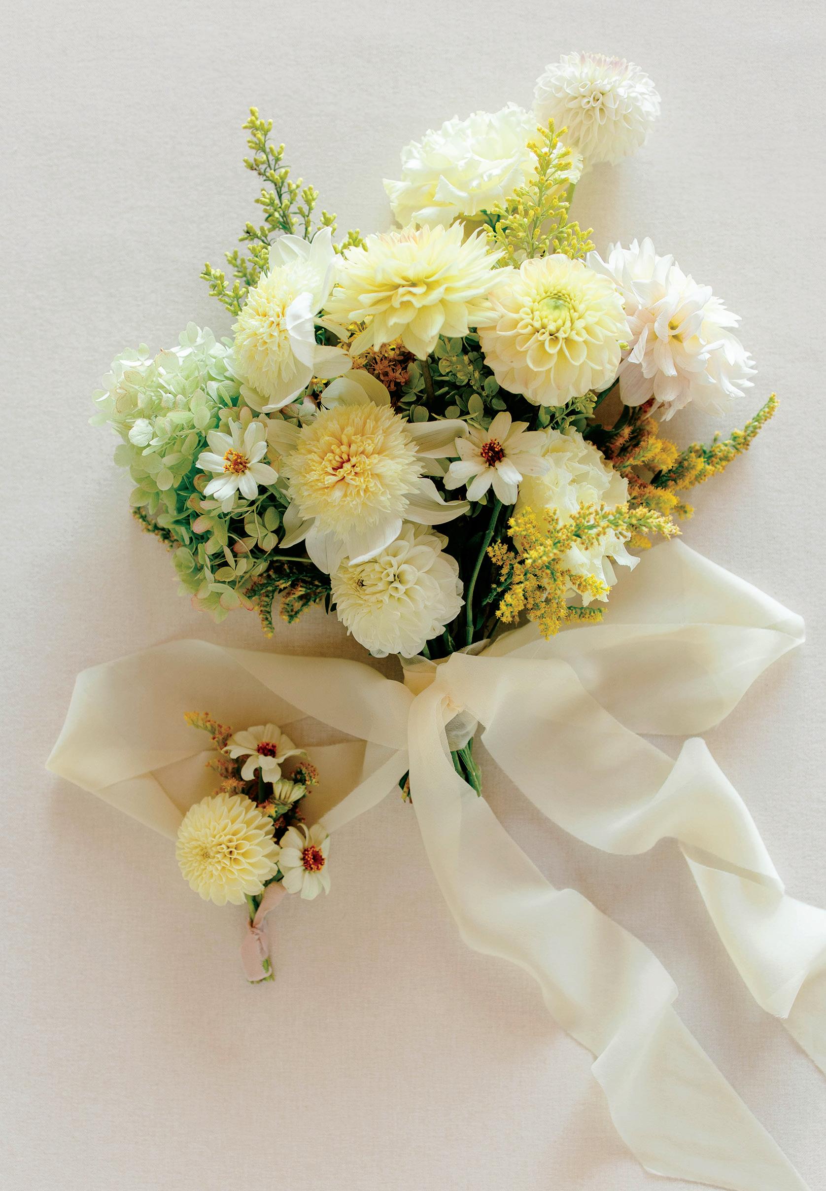 Gown from The White Room. Suit from Hugo Boss. Bouquet by Apricot Floral. Hair by Manes by Annie. Makeup by Beauty By LC. Produced and designed by Collected & Co. Photographed by Loui Photography at Woodland Glasshaus at Bavaria Downs. More details on page 108.